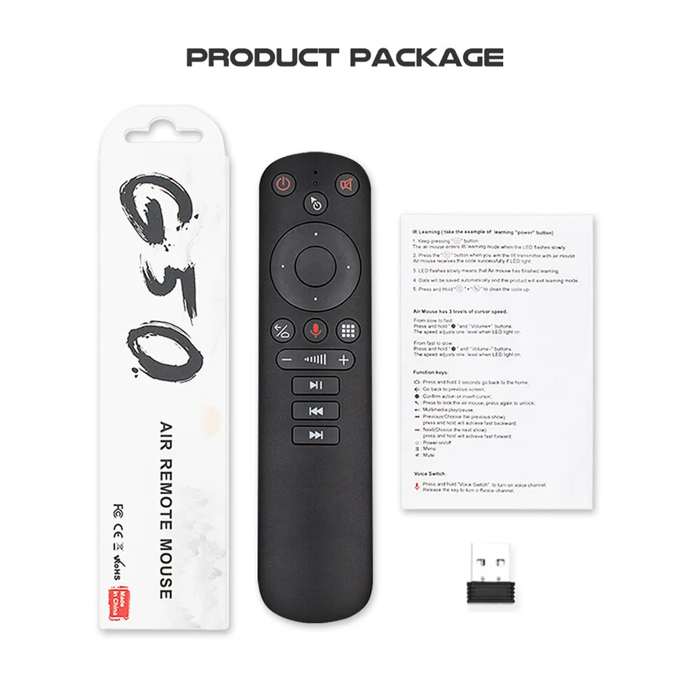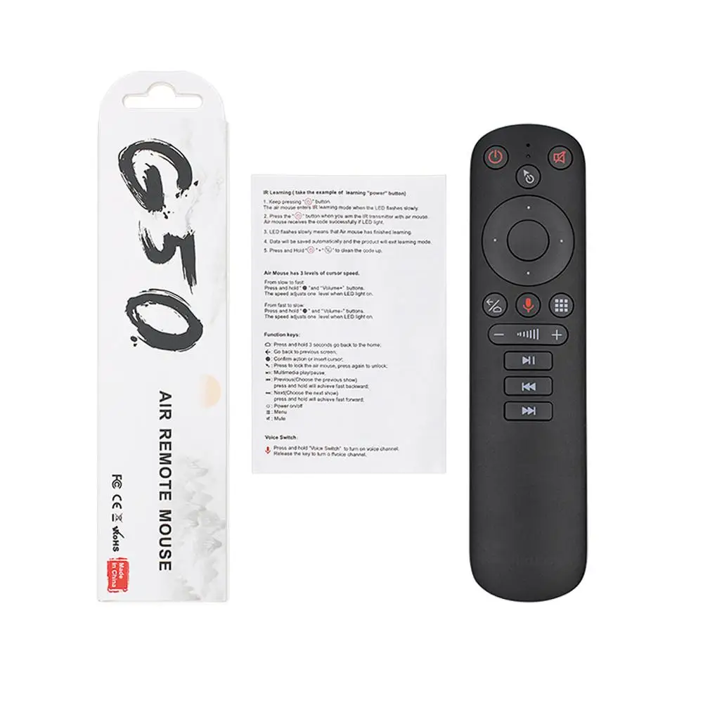 G50S Google Voice Air пульт дистанционного управления Мышь гироскоп Смарт Android TV Box Универсальный 2,4G USB Беспроводной ИК-пульт дистанционного управления Примечание:Только кнопка питания может быть запрограммирована для ИК-обученияЕсли вы используете голосовое Дистанционное управление на android tv box. Пожалуйста, установите «google assitant» Основные функции:1) Беспроводная Гироскопическая функция 2,4G2) подключи и работай3) Функция Air mouse4) функция голосового управления5) функция инфракрасного обучения (вы можете узнать его через кнопку «Питание») Спецификация:Режим беспроводной модуляции: GFSKЧастота модуляции: 2,4 ~ 2,4835 ГГцРабочая температура: -20 ℃ ~ 65 ℃Тип батареи: AAA * 2(Не входит в комплект)Рабочий ток: <10 мАТок в режиме ожидания: <20uAКоличество ключей: 16 ключейУдаленное Расстояние: <10 мРазмер: 164*40*15 ммВес: 60 гСистема поддержки: Windows,Android,Mac OS,Linux