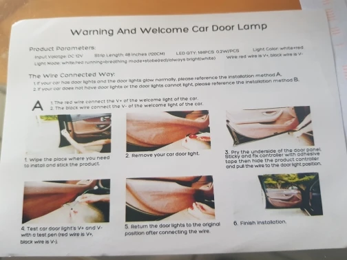 Посылка пришла вовремя, упакована хорошо, не чего не повредилось. Установил ленты на все четыре двери всё работает, выглядит очень круто особенно в тёмное время суток. Сейчас зима и белый свет который светит в низ хорошо рассеивается на бело снегу, я так думаю и летом будет очень удобнее выходить из машины в дождливую погоду теперь не наступишь в лужу или в грязь :)