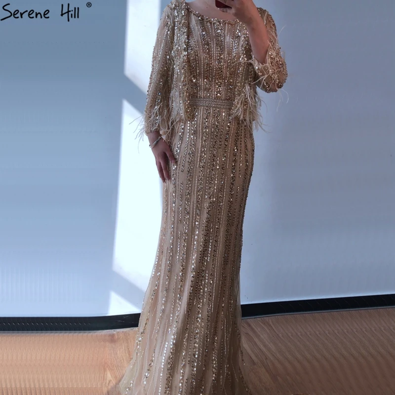 Дубай Роскошные перья Русалка сексуальные вечерние платья с v-образ...