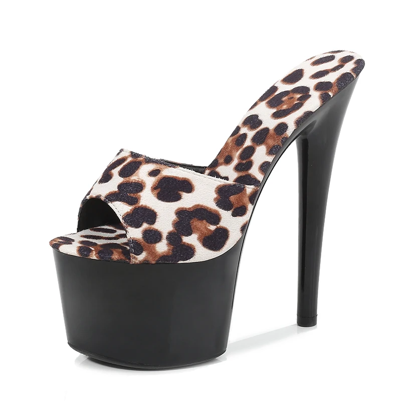 Шлепанцы женские с леопардовым принтом, флоковые сандалии на платформе, Высокий Каблук 13 см, 15 см, 17 см, лето 2020