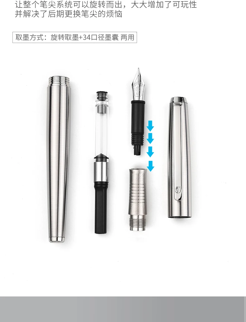 517S Hongdian металлическая Серебряная перьевая ручка из нержавеюще...
