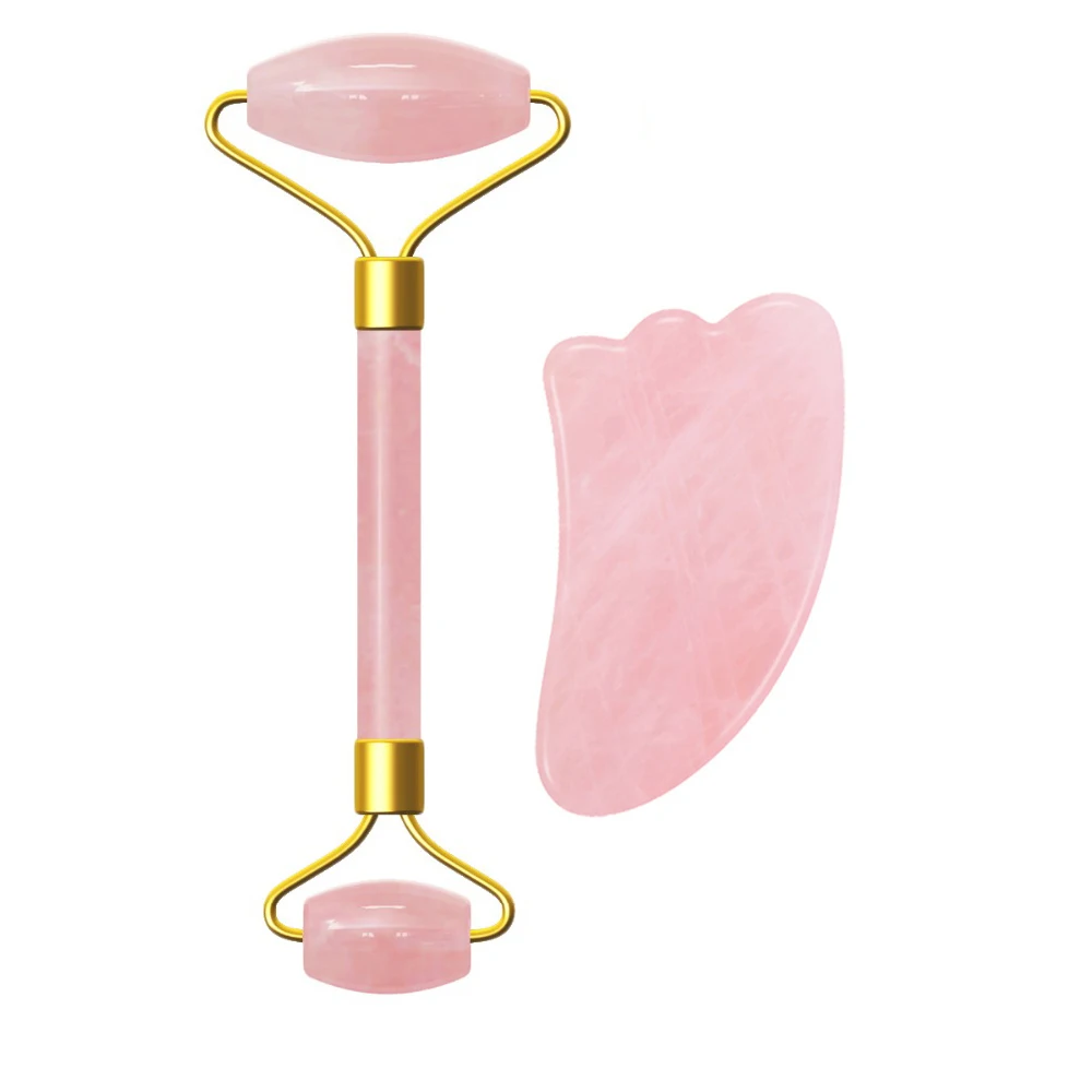 Розовый кварц нефритовый ролик гуаша скребок для доски набор натуральный Нефритовый камень роликовый массажер лица гуашь скребок гуаша массажный инструмент
