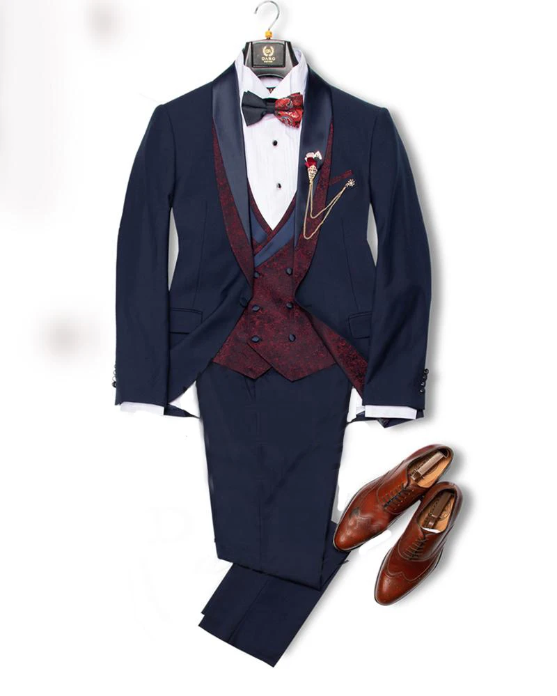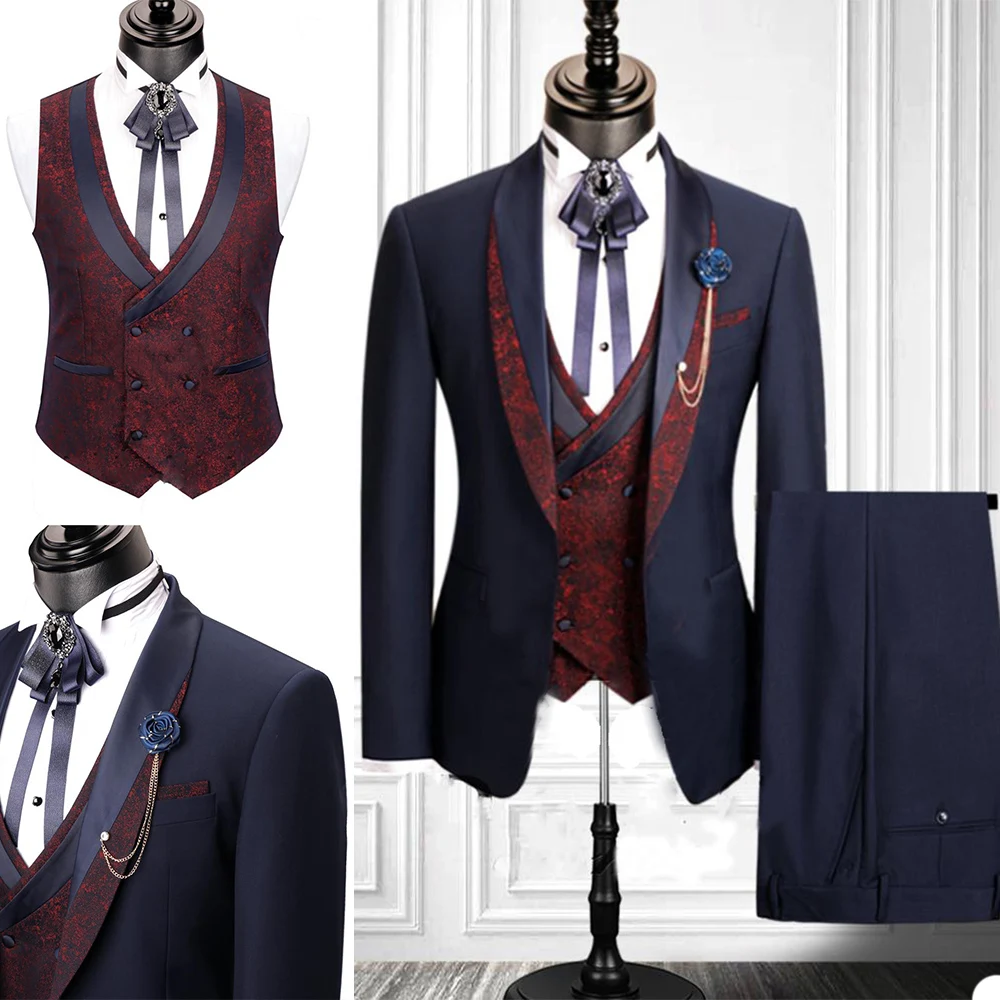 Деловые Свадебные Мужские костюмы на одной пуговице, золотистые мужские смокинги с отложным воротником и шалью на заказ (пиджак + пальто + брюки)