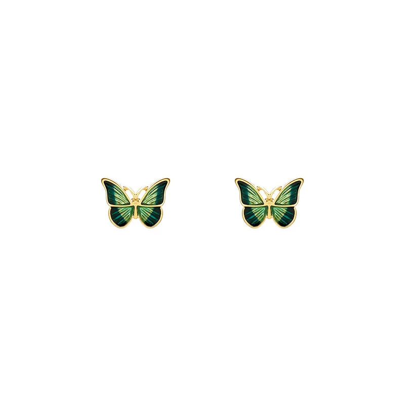 TitleOil Painting Green Butterfly Alloy Small Stud Earrings
