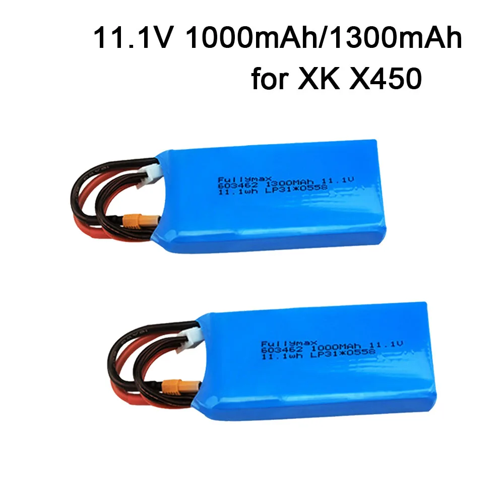 Литий-полимерный аккумулятор для XK X450 FPV RC дрона, 11,1 В, 1000 мАч, 1300 мАч, запасные части, перезаряжаемая батарея 3S, разъем XT30