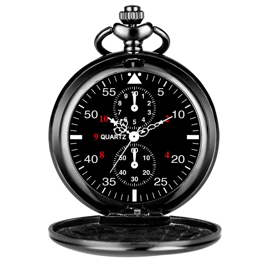 Мужские карманные часы, черный кварцевый чехол из прочного сплава, ...