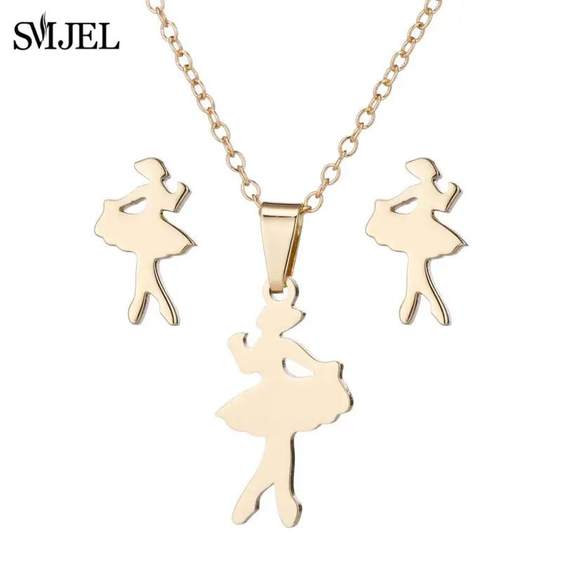 Женские серьги танцующие балерины, модные ожерелья-балерины золотог...