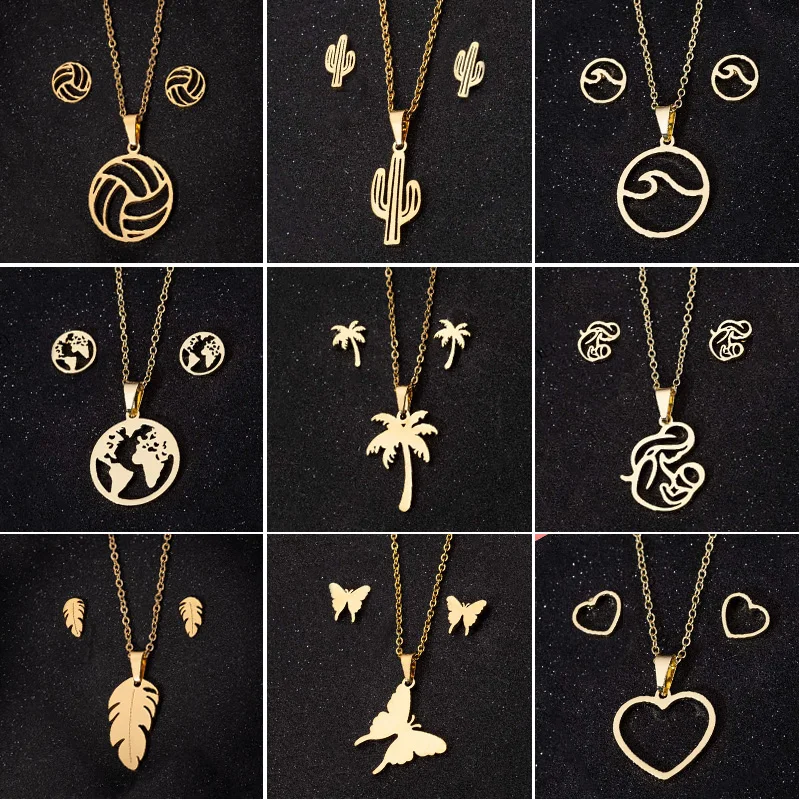 Женские Балетные ожерелья из нержавеющей стали, модное ожерелье в виде листьев бабочки, кактуса, кокосового ангела, серьги, Модный Ювелирный Набор
