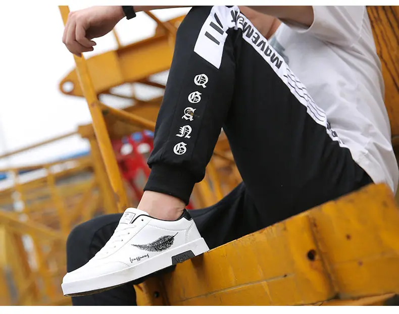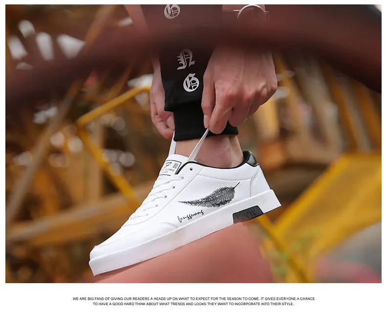 Кроссовки мужские, белые, дышащие, с принтом в виде перьев