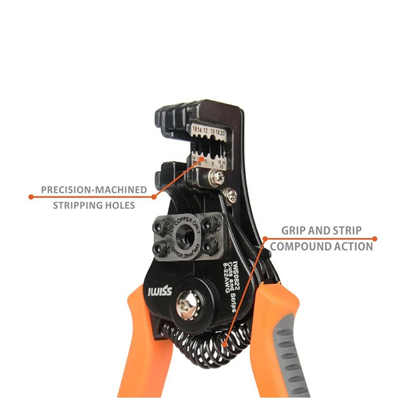 Плоскогубцы IWISS IWS-0822, автоматические плоскогубцы для зачистки проводов, многофункциональные кусачки для электриков, 0,3-8 мм, ручной инструмент