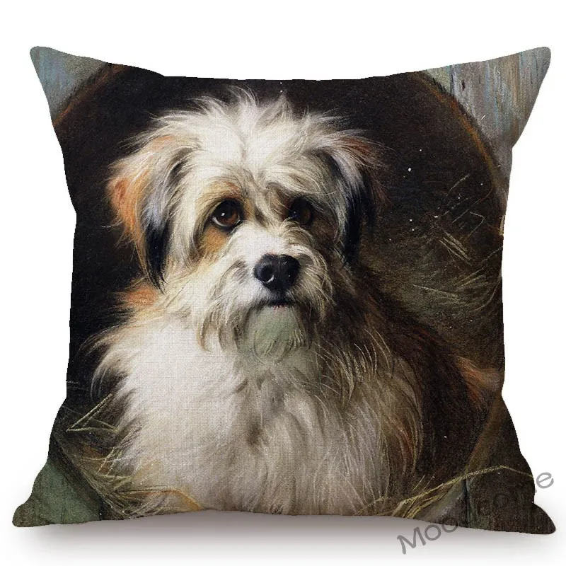 Наволочка для диванной подушки, льняная, с рисунком картины, картин...