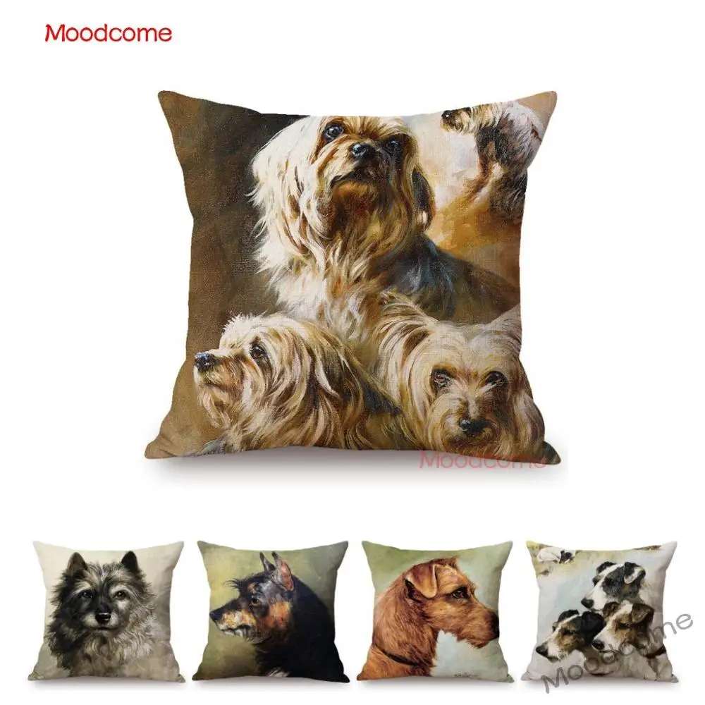 Льняной чехол для диванной подушки, с абстрактным изображением жира...