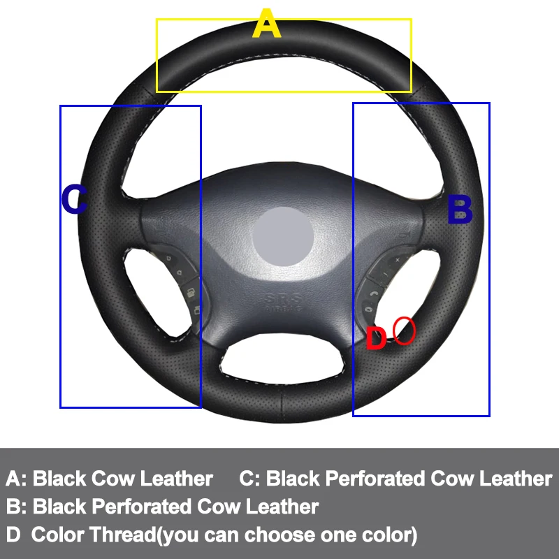 Кожа для ручного шитья для Renault Laguna 2 Чехол рулевого колеса а...