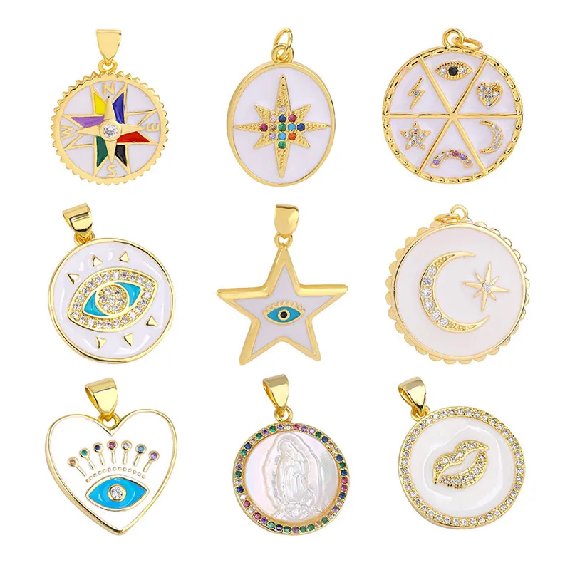 Подвеска Juya ручной работы, ювелирные аксессуары, эмалированное сердце, круглая звезда, греческий сглаз, подвеска для самостоятельного изготовления браслета, ожерелья