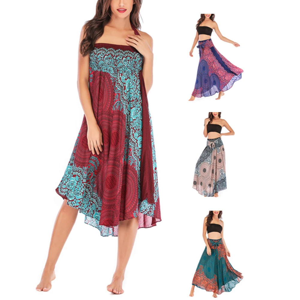 Женское длинное платье с принтом, летнее, с высокой талией и оборками, Пляжное, праздничное, повседневное, 8 цветов, новинка 2020