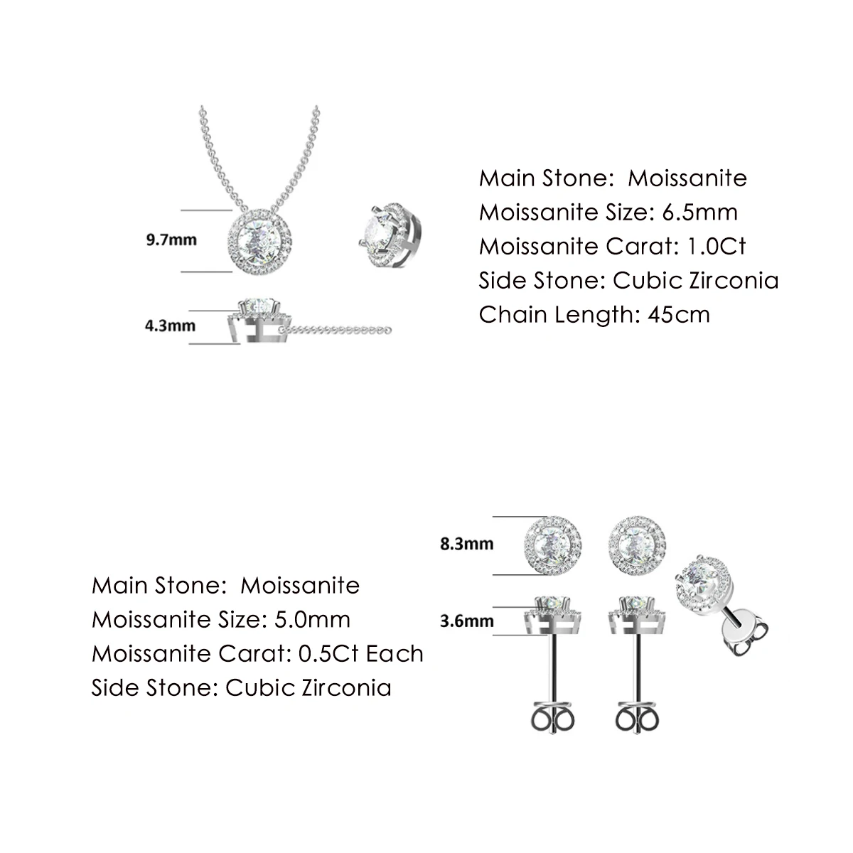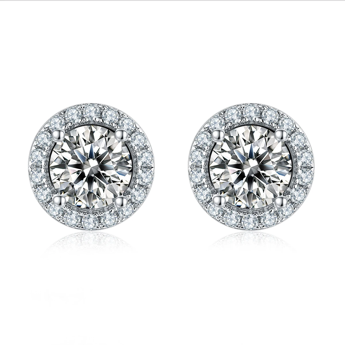 Серьги женские из белого золота с мусанитом, 6 Зубцов, 5 мм, 6 мм