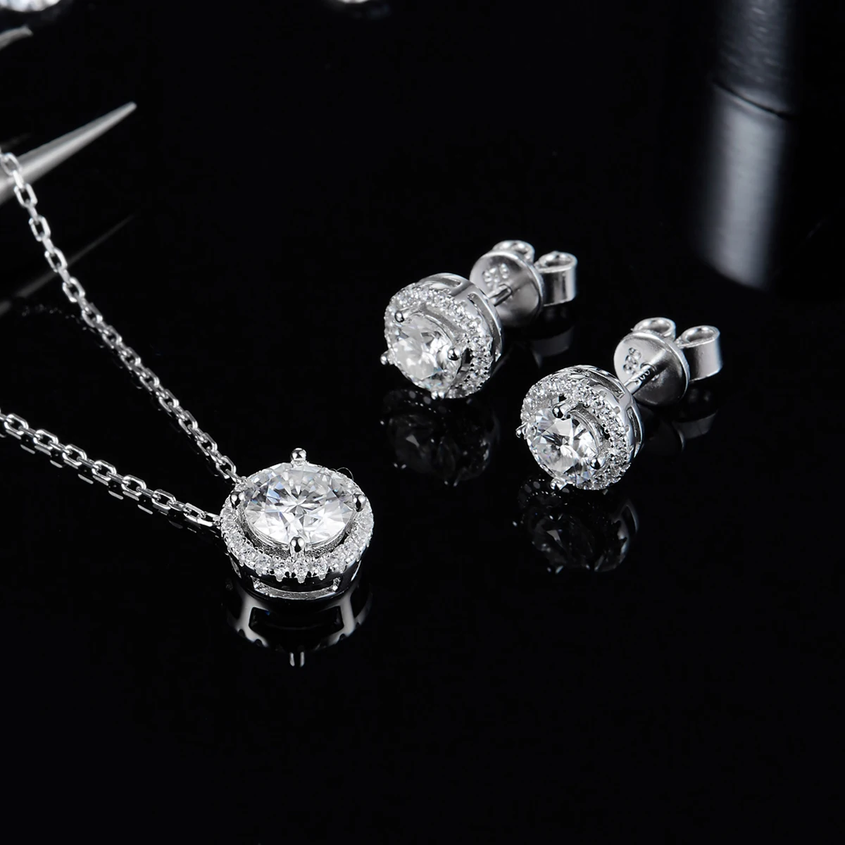 Комплект ювелирных изделий из серебра 925 пробы, с муассанитом