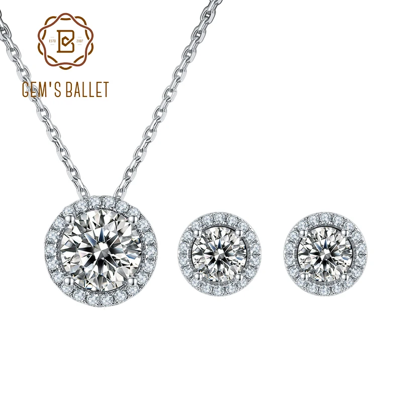 Комплект сережек для женщин GEM'S BALLET Moissanite, ожерелье с под...
