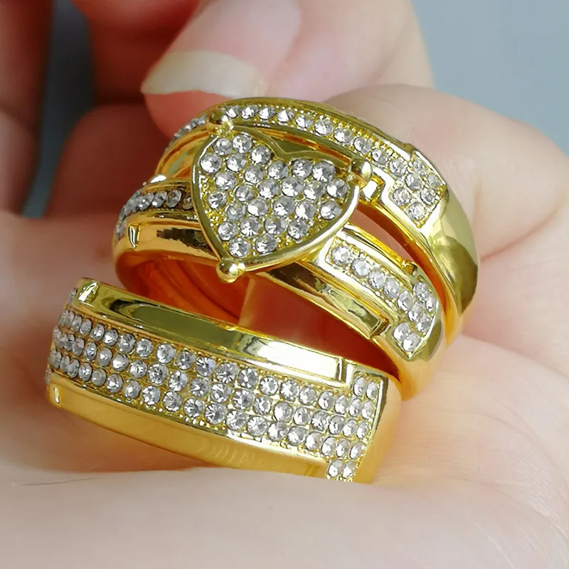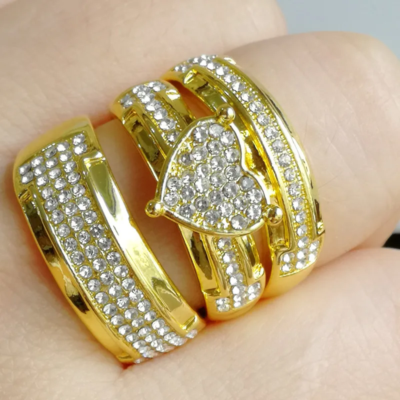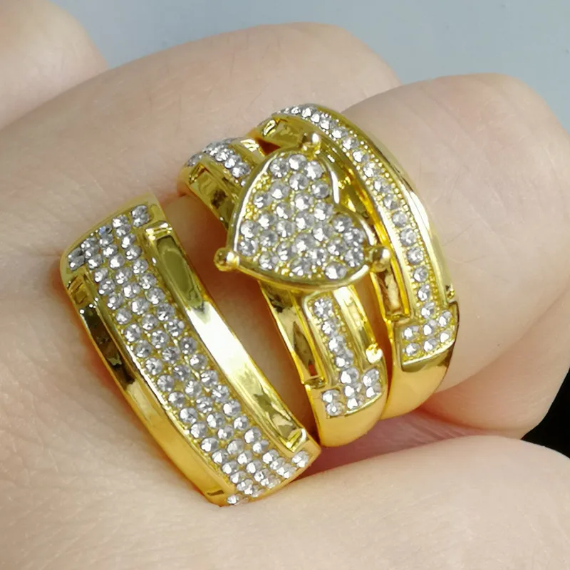 3 шт.компл. Роскошная сверкающая двухцветная кольцо в форме сердца хрусталь камень ювелирные изделия предложение Подарок на годовщину свадебный набор колец для вечеринки