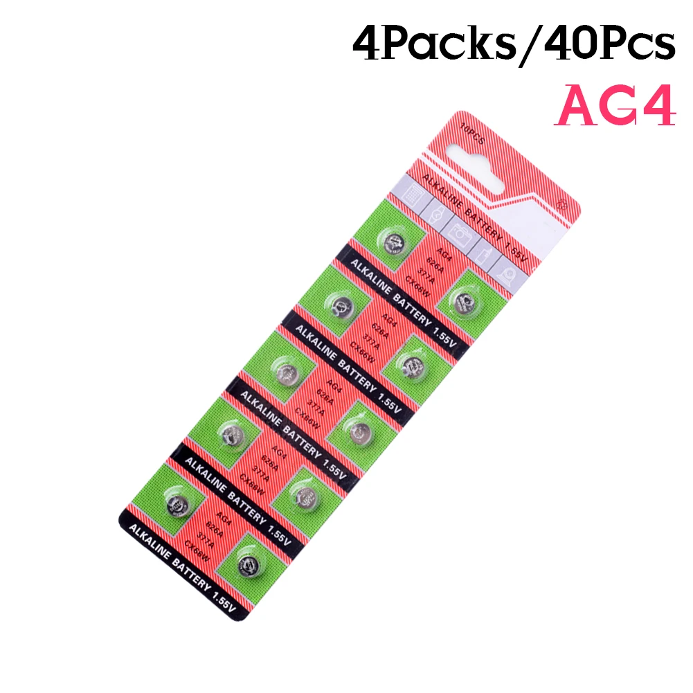 Батарейки с 4 кнопками, 40 шт.лот, 1,55 в, AG4, 377A, 377, LR66, LR626, SR626SW, SR66, AG4 AG