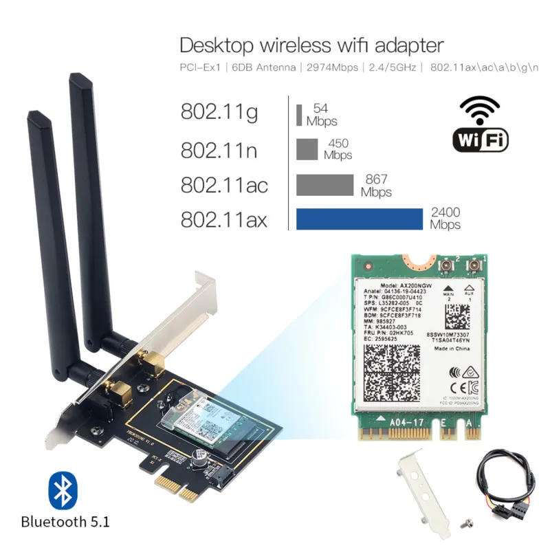 3000 Мбитс Wifi 6 PCIe WiFi адаптер Intel AX200 для Bluetooth 5,1 802.11ax двухдиапазонный 2,4G5 ГГц PCI Express беспроводная карта