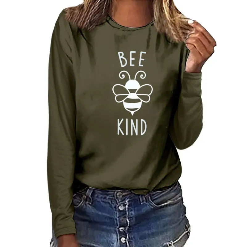 Женские футболки с длинными рукавами и принтом пчелы на осень и зиму 2020, свободные белые футболки с круглым вырезом и графикой, уличная одежда