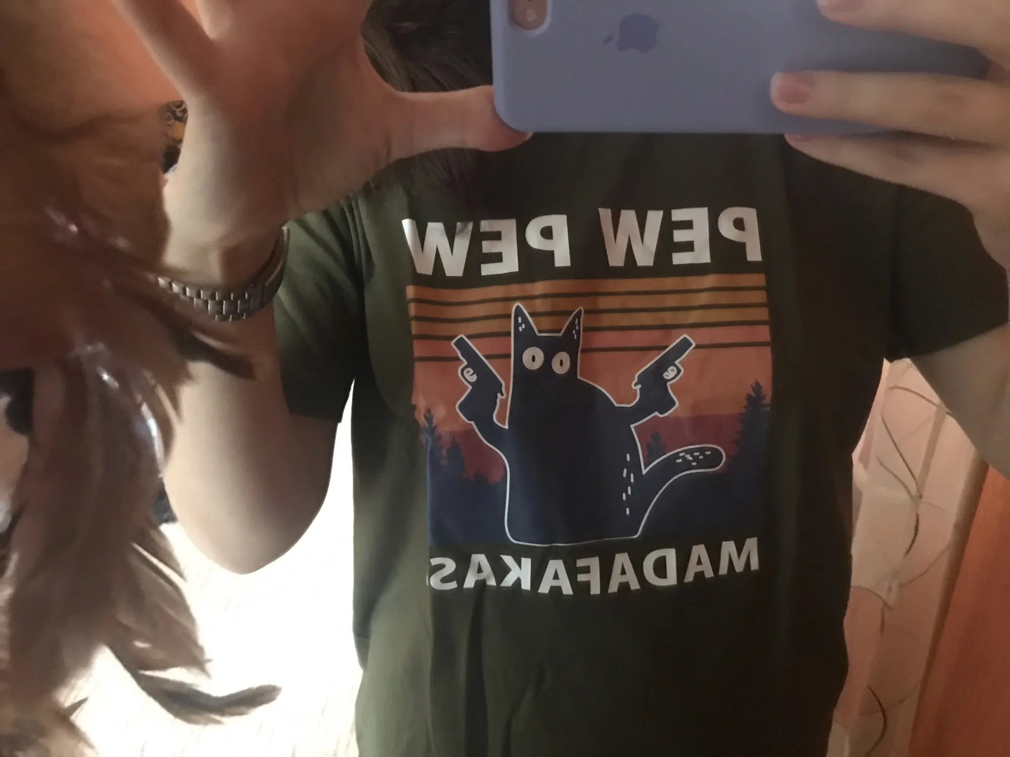 Как на фото. Это также хлопок (некоторые из других футболок, которые я купил у Ali, были плотно прилегающие и тянущиеся.)