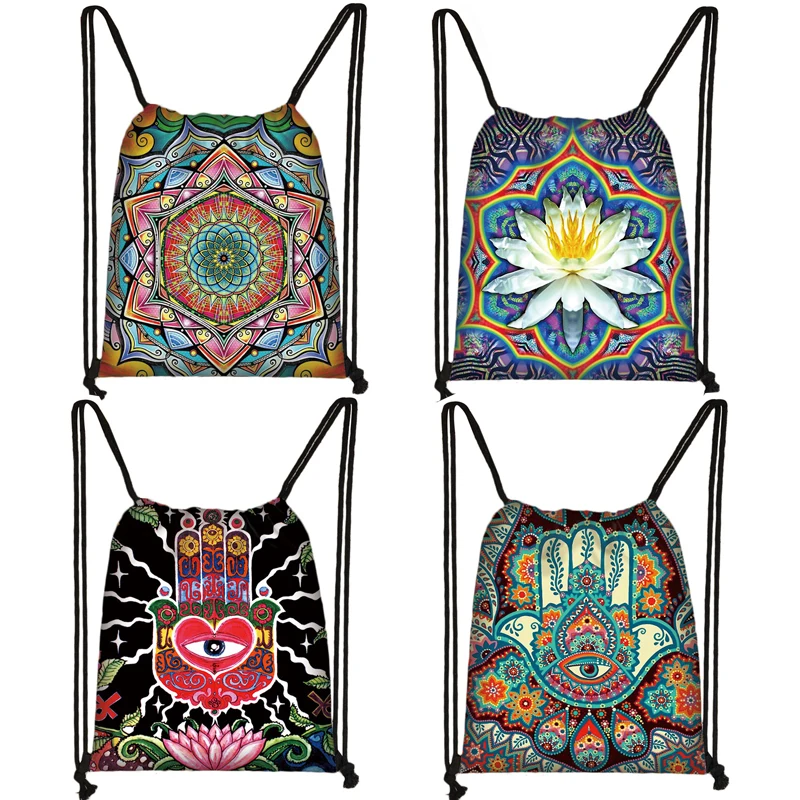 Рюкзак Hamsa Fatima с ручкоймандалой, Женская дорожная сумка, Женская Холщовая Сумка для хранения, сумка на шнурке для девочек, сумка для книг, держатель для обуви
