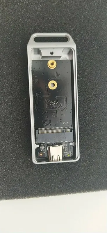 Товар прибыл относительно быстро. Крышка была закрыта, и ее было очень трудно открыть. Только удалось открыть его, бросив его на пол, чтобы инерция открыть его. Поэтому не закрывайте крышку без подключения карты SSD, иначе вы не сможете ее аккуратно открыть позже.