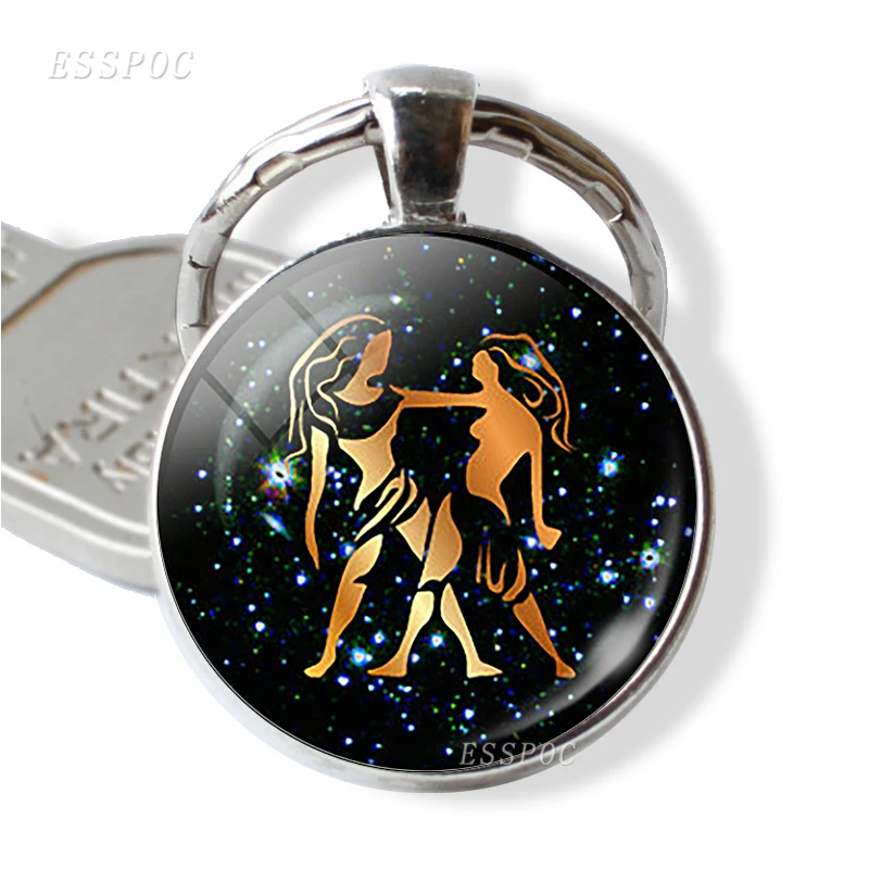 Брелок Zodia со знаком созвездий, стеклянный купол, ручная подвеска, ювелирные изделия, брелок для ключей с изображением Санта-Клауса