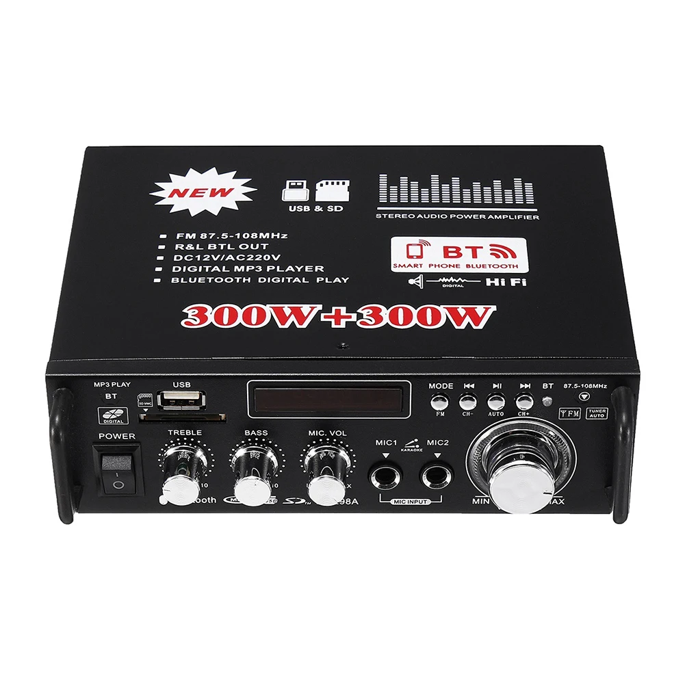 12v 220v ЖК Дисплей цифровой усилитель Hifi аудио стерео Bluetooth Fm 2ch Amp автомобильное дома поддержкой Usb, Sd карт памяти, Mp3 плеер