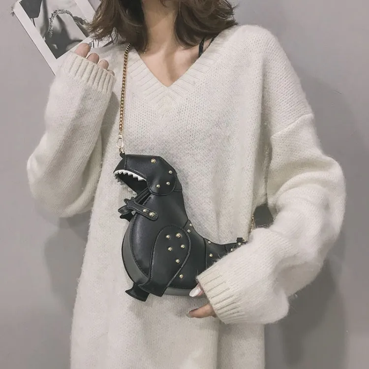 Тренд моды 3D динозавр дизайн заклёпки створки сумка для женщин цеп...