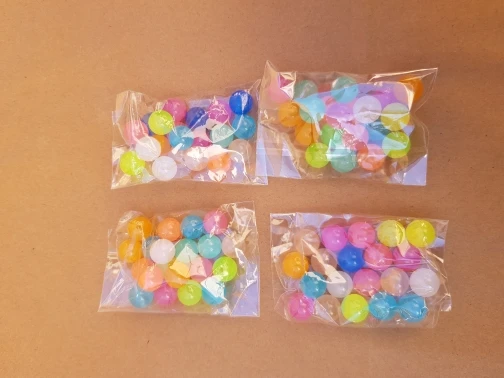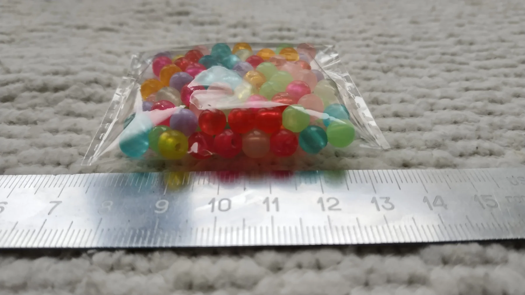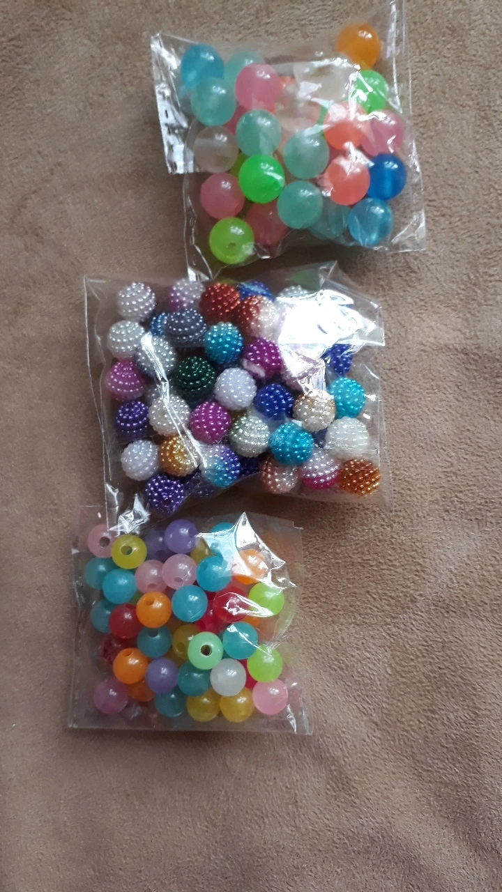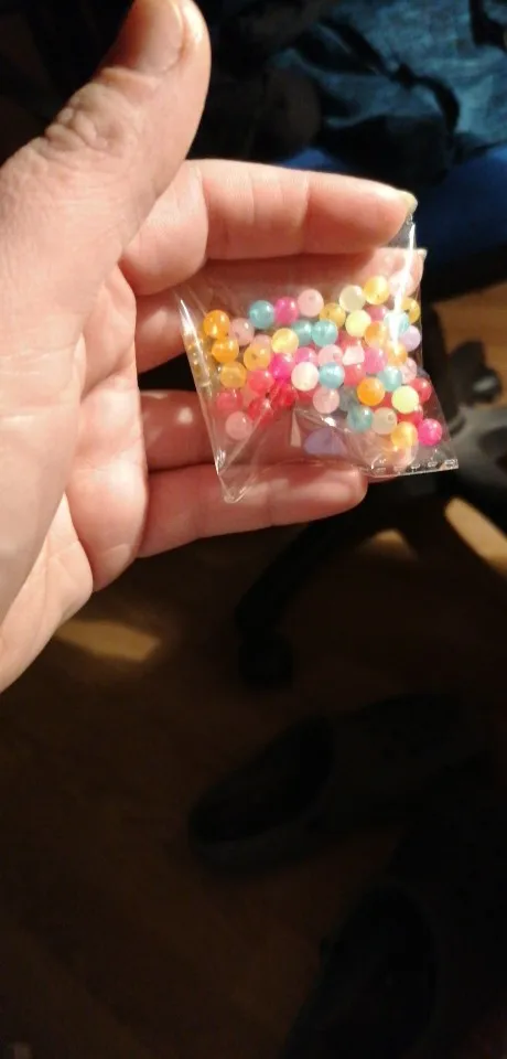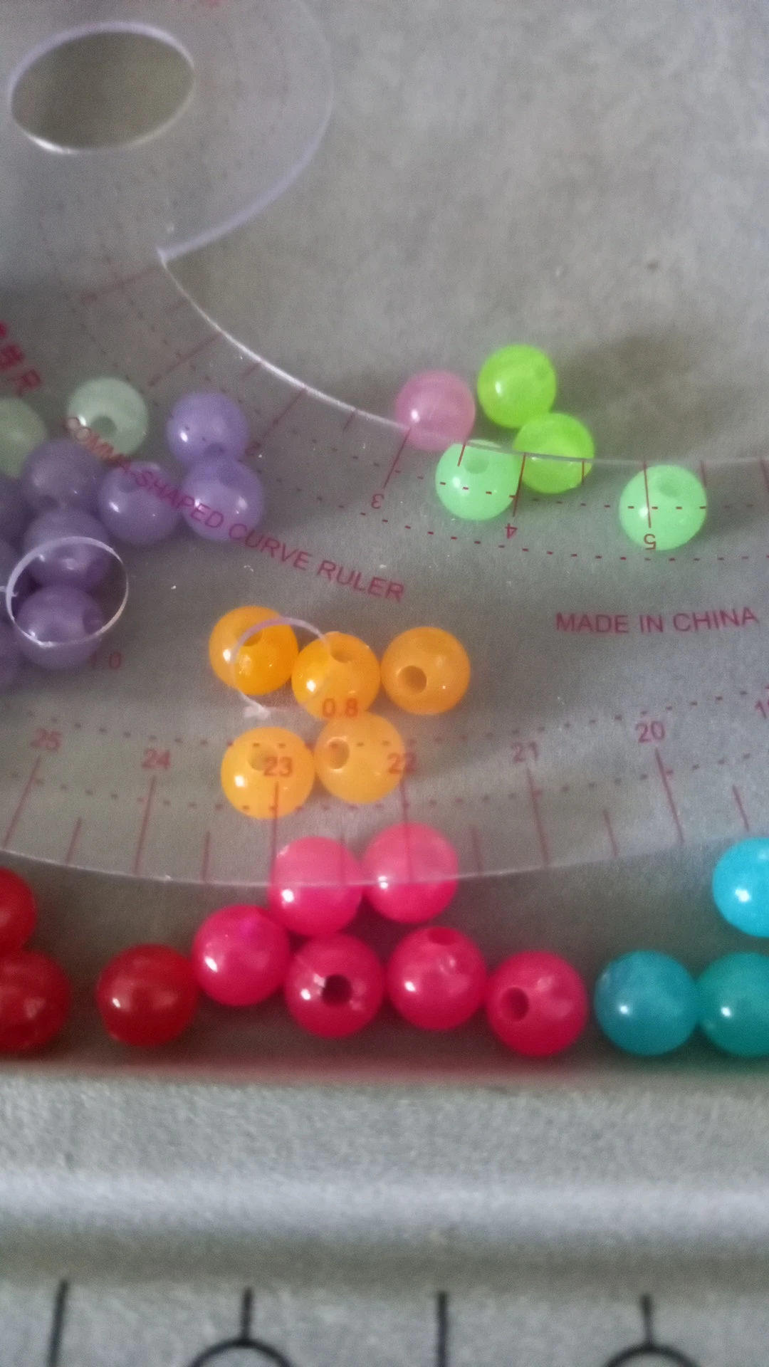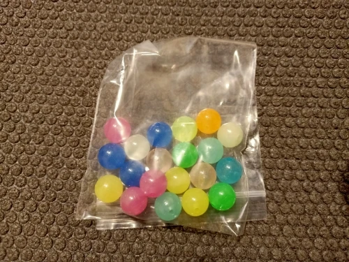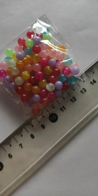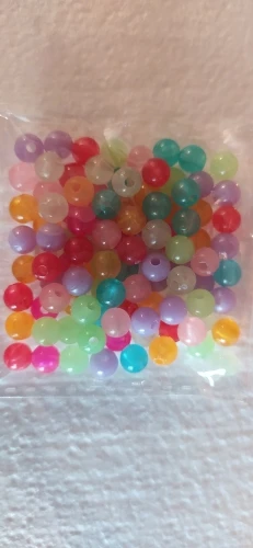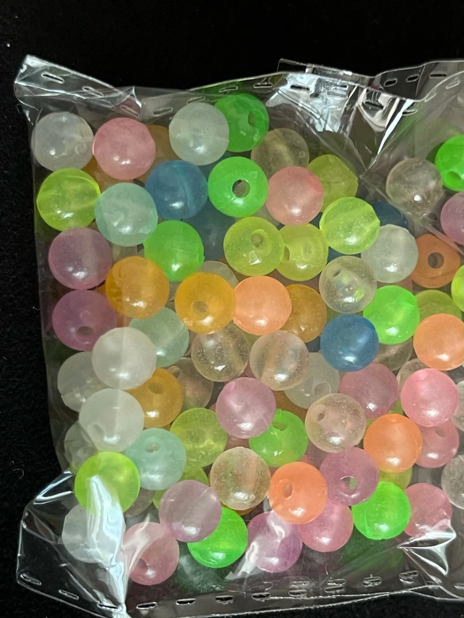 Как на фото. Некоторые цвета выглядят больше, чем другие, как зеленые, но в сумке не так много, и, поскольку все фосфоресцирует, это не длится долго. Я взял размер 6 мм, они действительно маленькие, но, как я хотел их. Я сделал браслет с жемчугом.