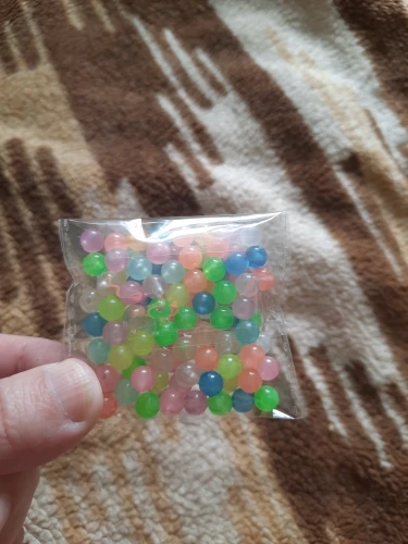 Доставка около месяца, не отслеживается. Товар упакован просто в пакет. Качество изготовления плохое: получено 91 штука вместо 100штук, диаметр 5мм вместо 6мм, темные тона вообще не светятся, светлые тона имеют практически незаметное свечение. Цена низкая, но товар - полная фигня. Не рекомендую. Delivery about a month, not tracked. The product is simply packed in a bag. The workmanship is poor: 91 pieces were received instead of 100 pieces, 5mm diameter instead of 6mm, dark tones do not glow at all, light tones have an almost imperceptible glow. The price is low, but the product is bullshit. I do not recommend it.