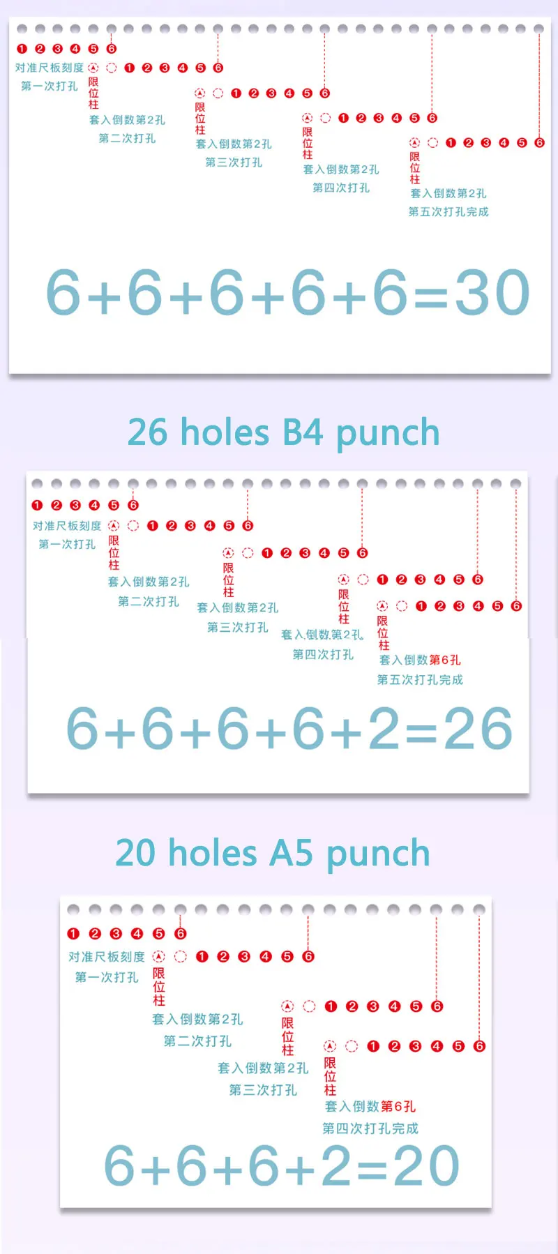 Дырокол A4(30 отверстий) B5(26 отверстий) A5(20 отверстий) сделай сам дырокол для отверстий в листе россыпью ручной работы дырокол для бумаги в офисе