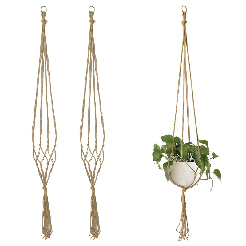 Зеленая вешалка для растений, корзина ручной работы, веревочная сетка, ремешок, креативные подвесные горшки, винтажный хлопковый декор для сада, дома