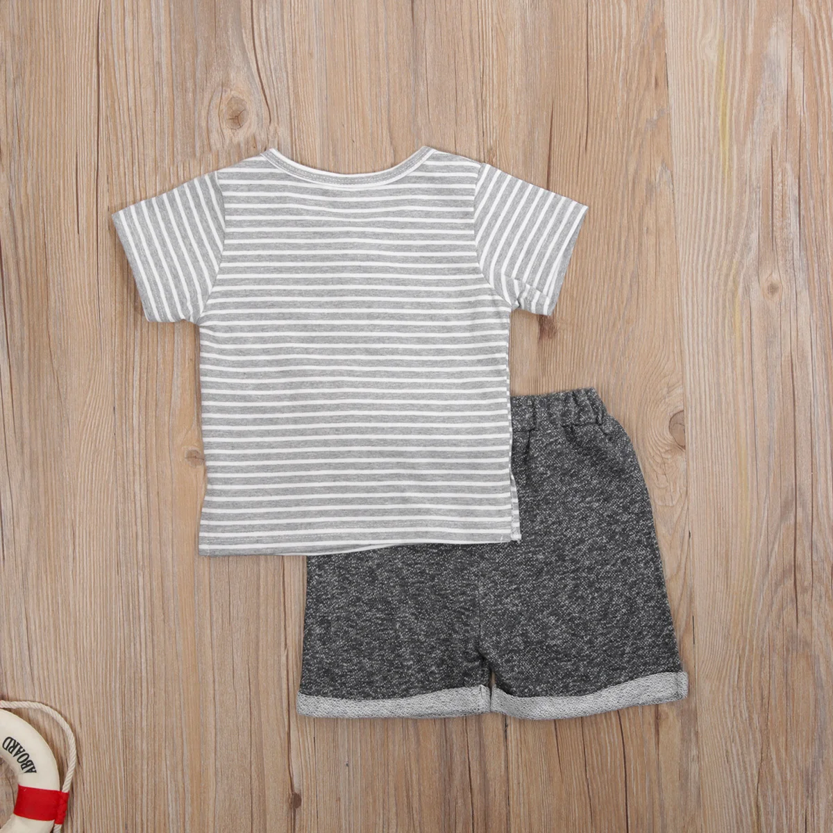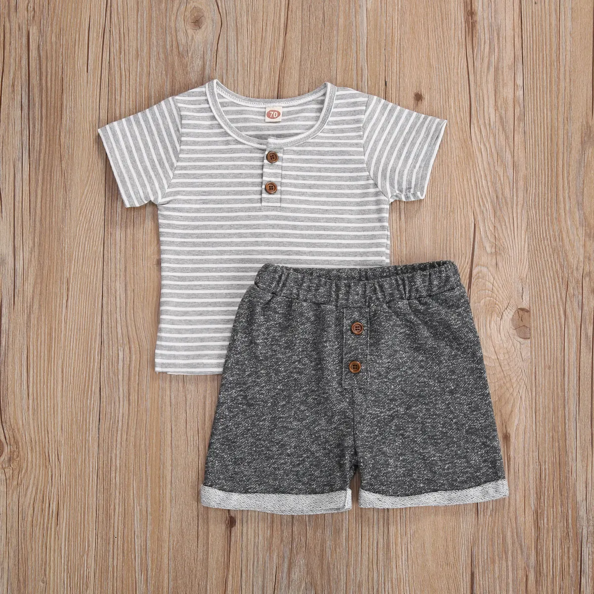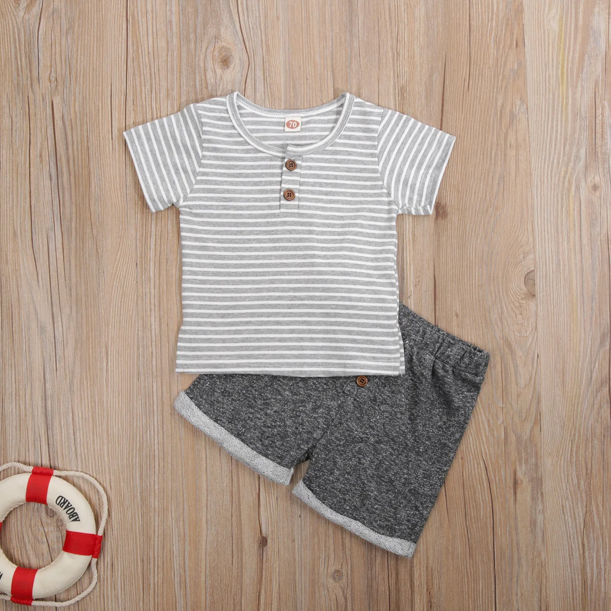 Комплект одежды для маленьких мальчиков, хлопковая футболка в полоску для новорожденных, шорты на пуговицах, милая одежда для маленьких мальчиков