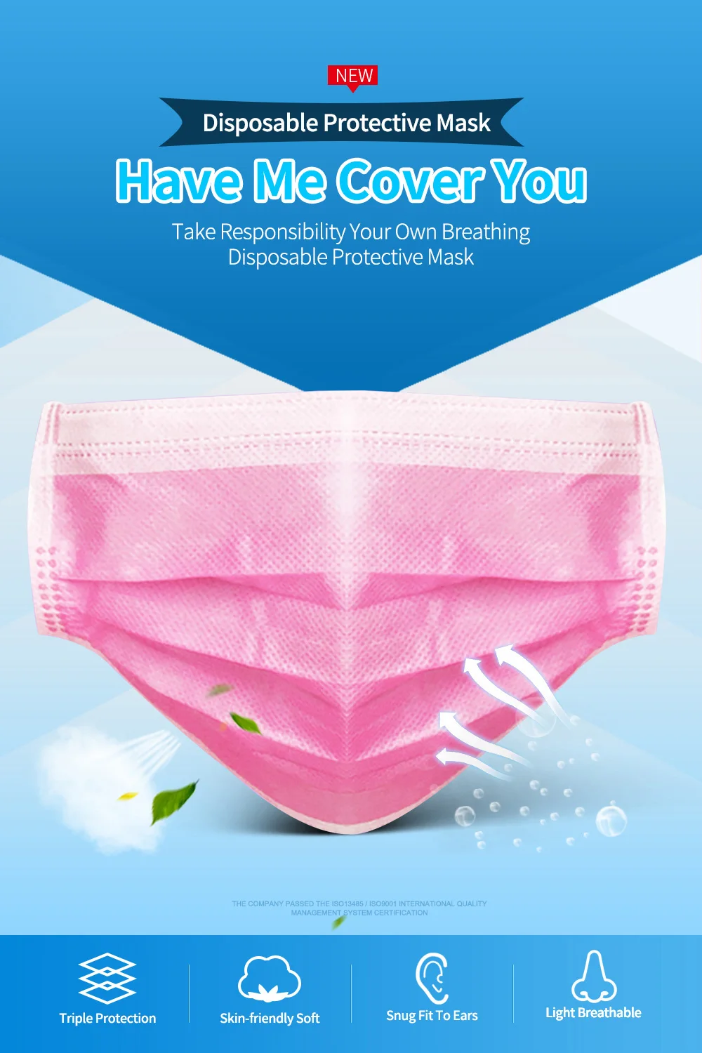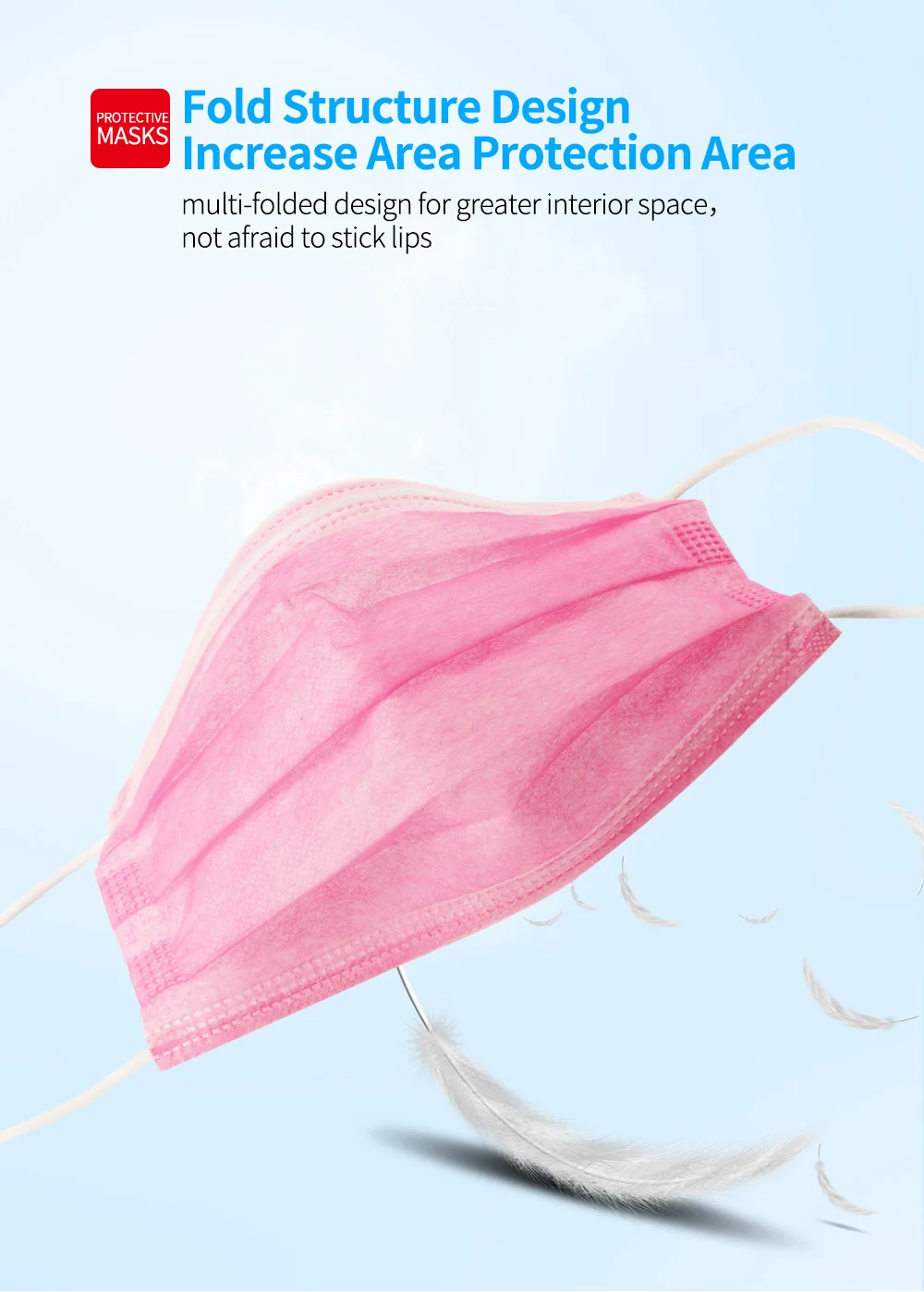 Материал:Трехслойное Нетканое полотно и выдунное из расплава полотно Подходящий сезон:Весна, Осень, Зима, Лето Цвет: Розовый Стиль маски:Тип уха Размер:Один размер Особенности продукта: 1. Новая ткань PP Нетканая ткань, мягкая и чистая, удобная и дышащая 2. Процесс бесшовной вязки 3. Три раза дизайн, больше дышащего пространства на лице 4. Пластиковая полоска для носа, алюминиево-пластиковая полоска для носа, Как носить маску: 1. Закройте рот и нос и Повесьте два боковых ремня на уши 2. Фиксация моста носа в соответствии с формой носа предотвращает загрязнения воздуха от входа. 3. Пожалуйста, потяните маску к нижней челюсти, чтобы немедленно предоставить трехмерное дышащее пространство.
