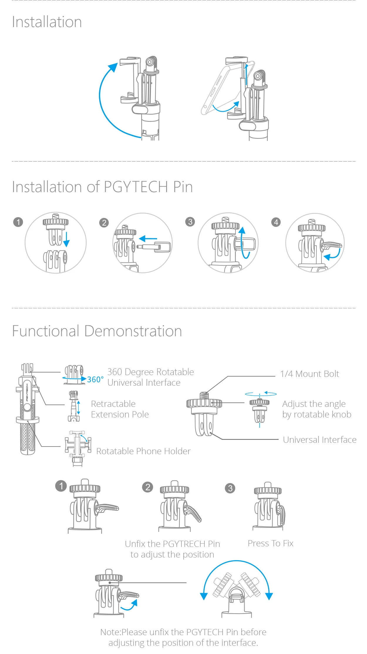 Экшн-удлинитель PGYTECH DJI OSMO, штатив + селфи-Палка для Insta360 One X, Спортивная камера Gopro, экшн-аксессуары Osmo