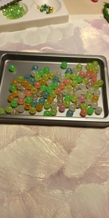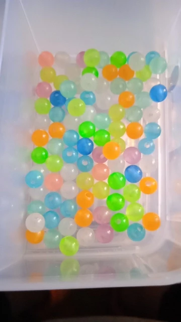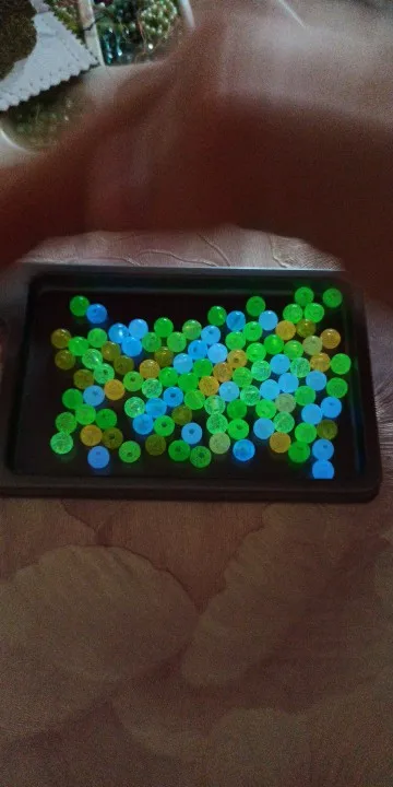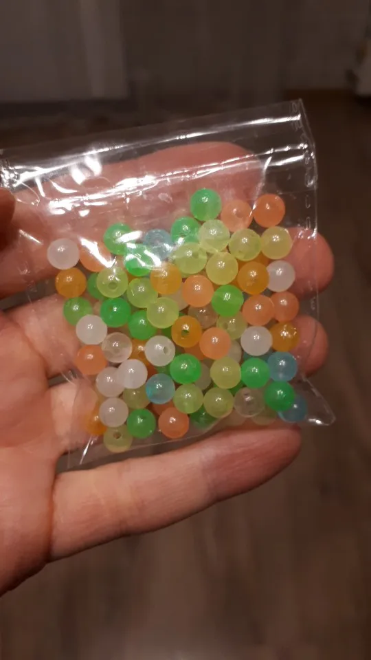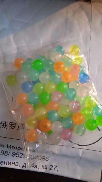 бусины хорошо светятся в темноте, и при свете приятные цвета, полупрозрачные. заказывала 11.11 2020г, чуть больше чем за 3 недели посылка пришла в Московскую область. количество даже больше на 2 штуки. Спасибо продавцу!!!