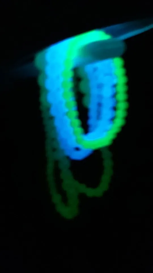 Эти бусины светятся очень ярко... Они даже светятся через мешок... Я очень доволен своими бусинами. Я заказал каждый цвет и уже заказал еще один полный комплект. Я очень рекомендую это. Я уже сказал всем моим друзьям об этом также ......