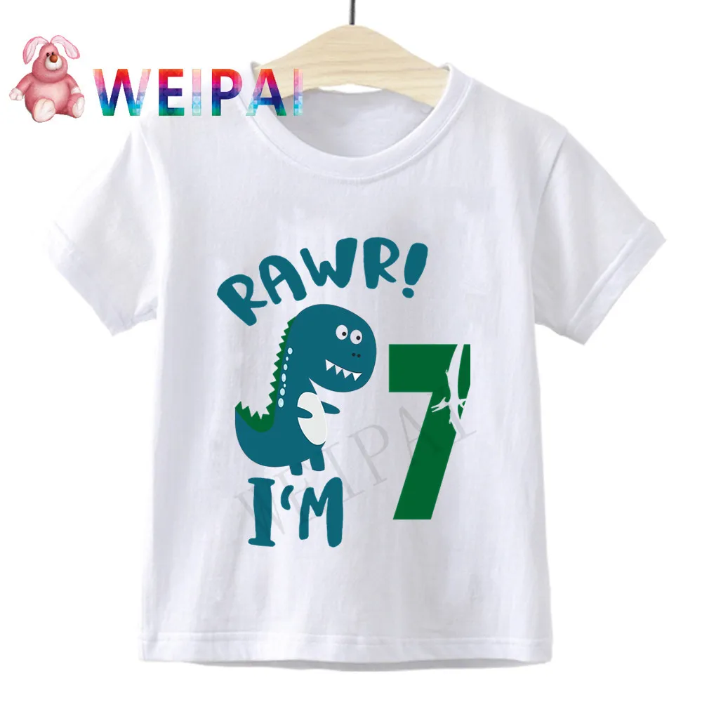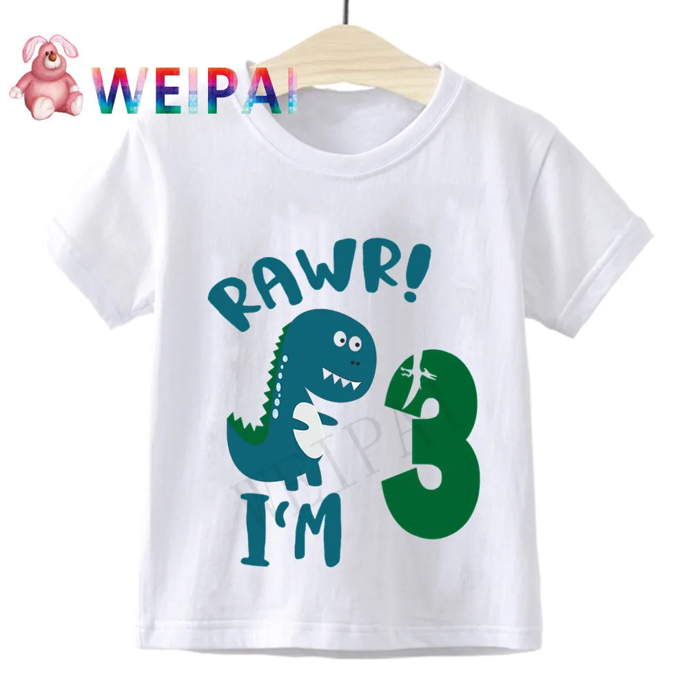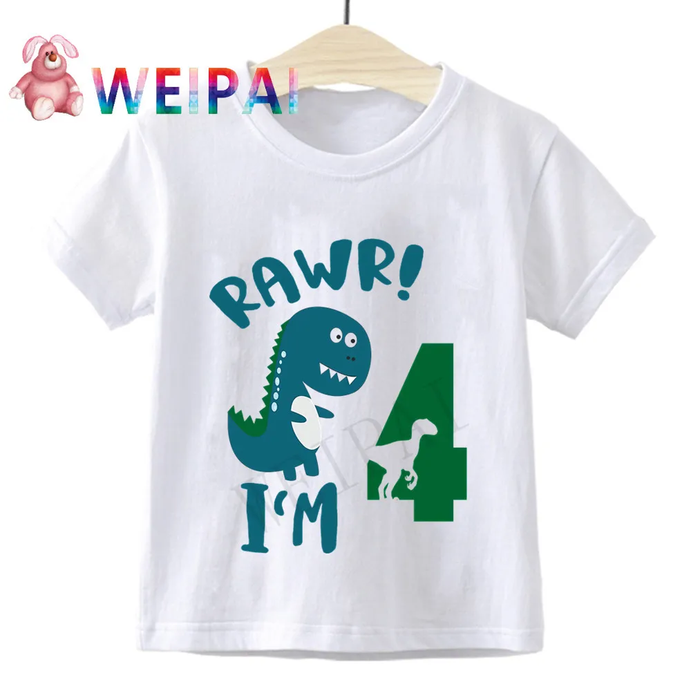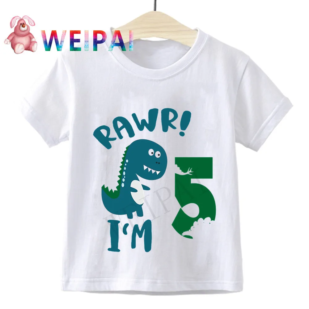Футболка с динозавром для мальчиков, с рисунком на день рождения, с цифрами, Детская футболка с динозавром, забавный подарок для мальчиков и девочек