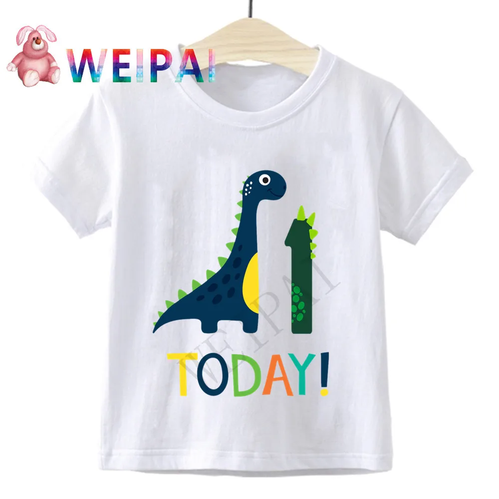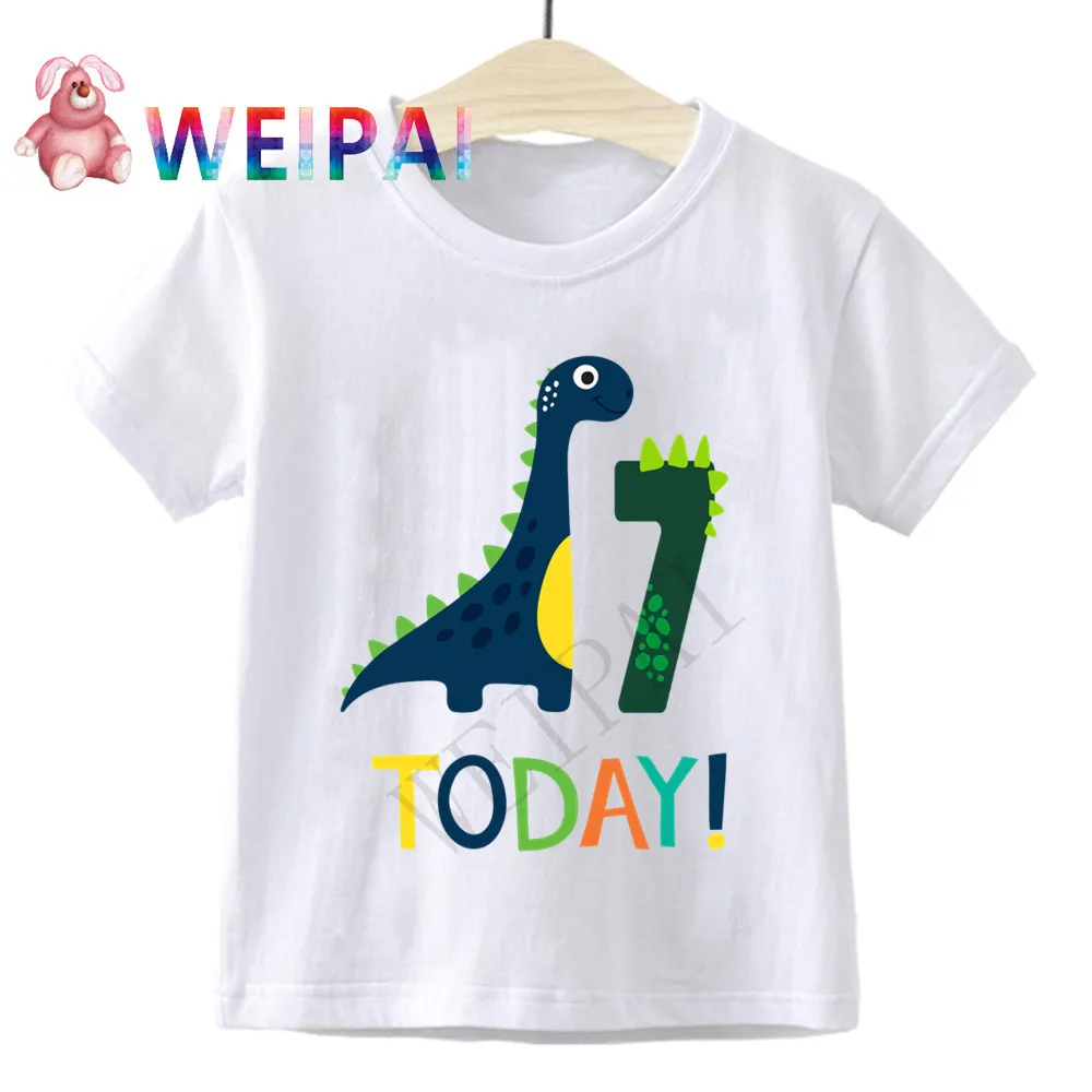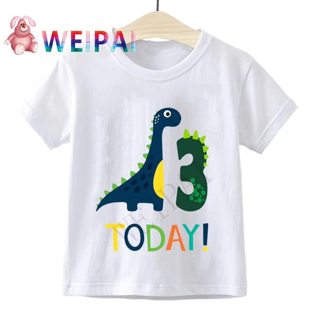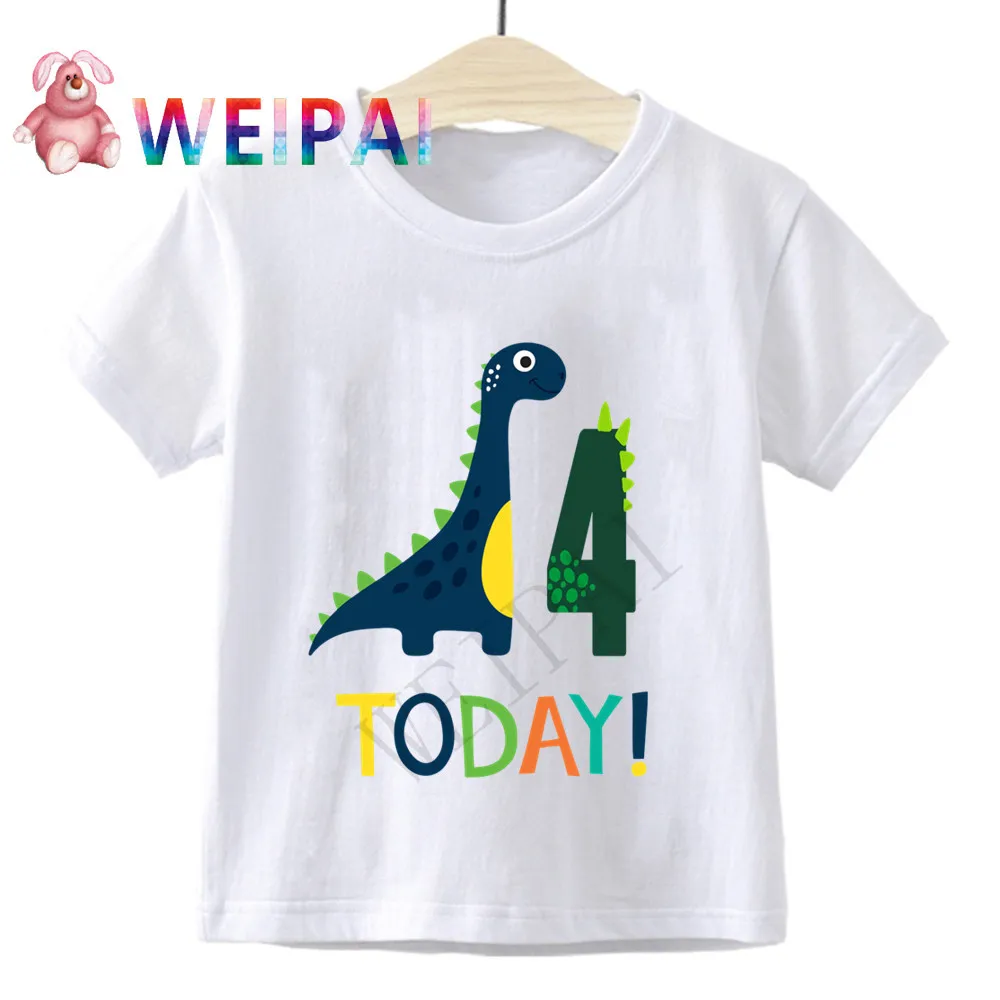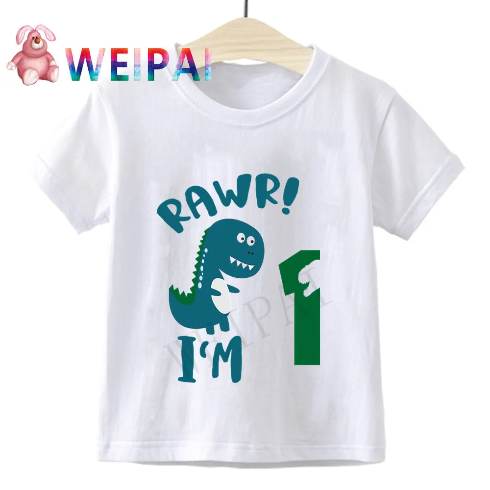 Футболка с динозавром для мальчиков, с рисунком на день рождения, с цифрами, Детская футболка с динозавром, забавный подарок для мальчиков и девочек
