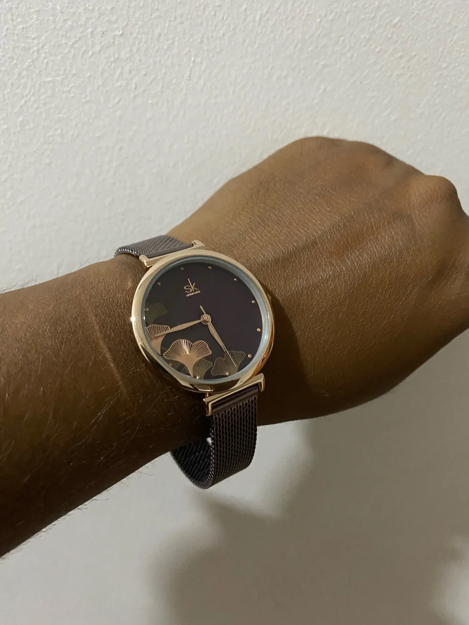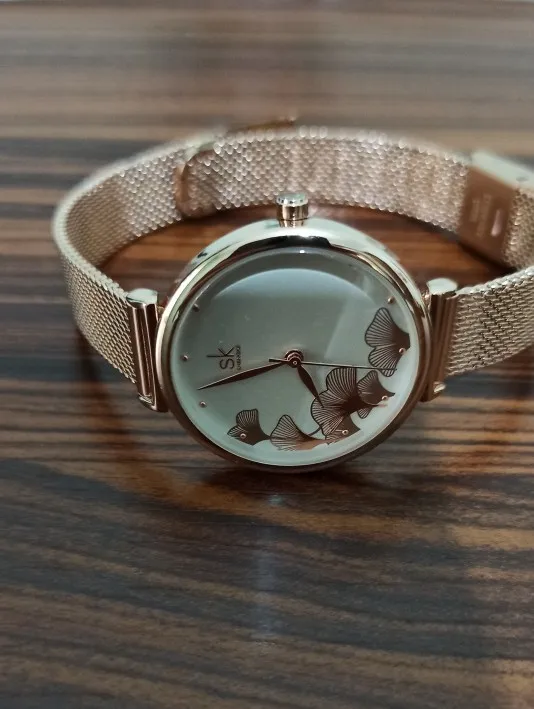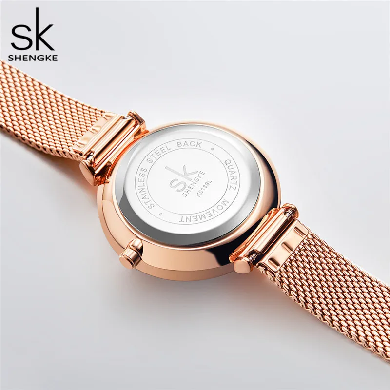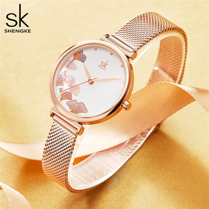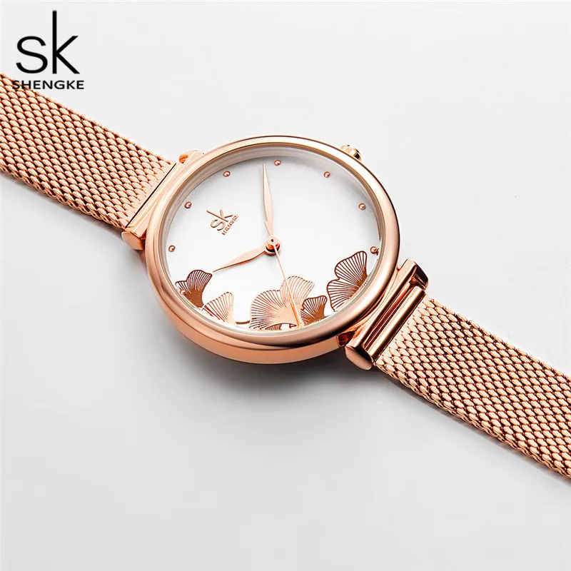 Женские кварцевые часы Shengke, с большим цветочным циферблатом, водонепроницаемые, с сетчатым стальным ремешком