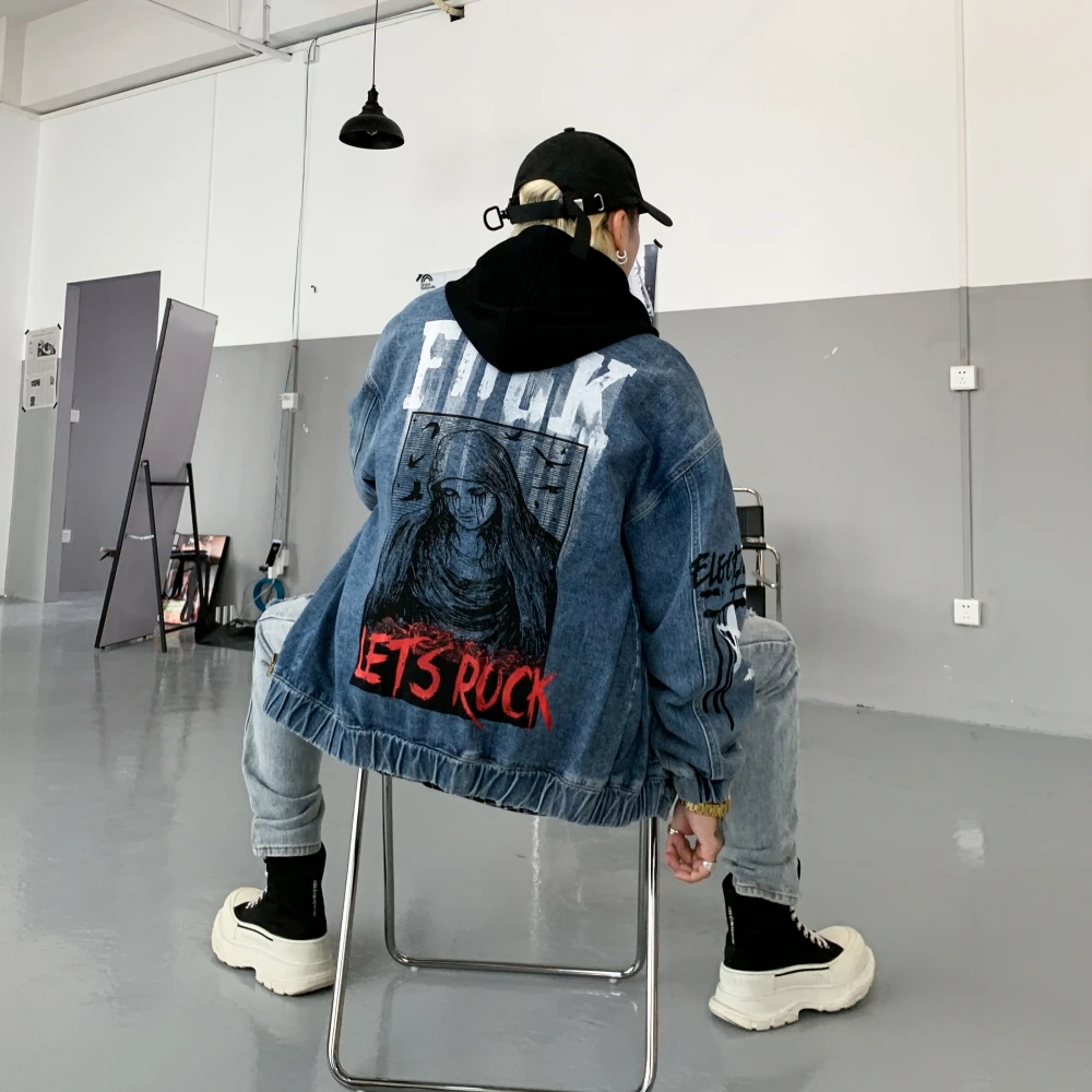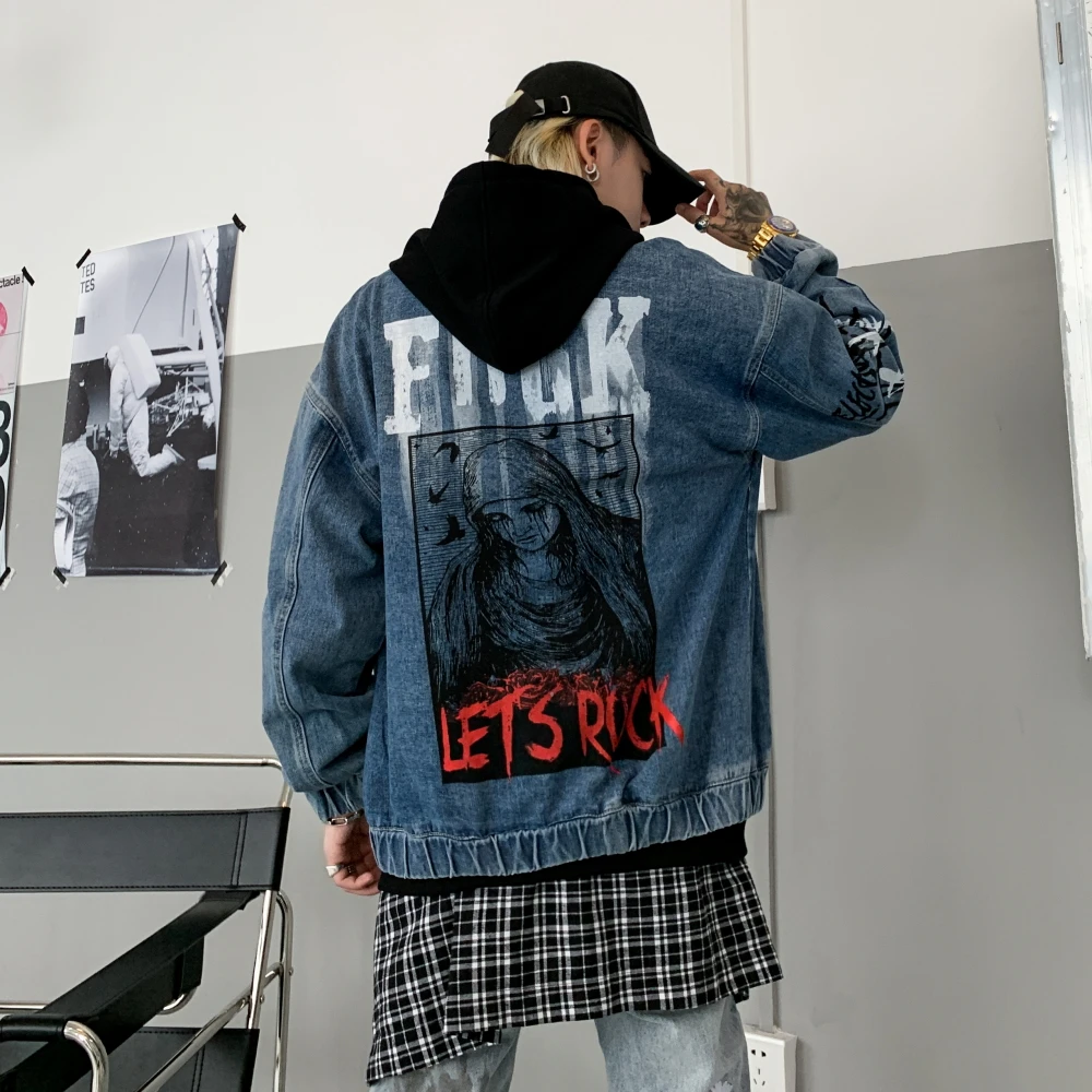 Джинсовая куртка Дева Мария для мужчин, уличная одежда, синие джинсовые куртки-карго в стиле хип-хоп, Ретро ковбойские куртки, пальто, мужская верхняя одежда 2020