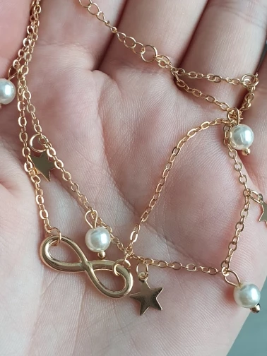 Браслет состоит из двух цепочек, первая-еле сходится (щиколотка стройная), вторая- очень длинная ,браслет не висит, а лежит на ноге, достоет до пятки. Для носки не годится.