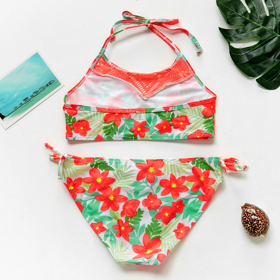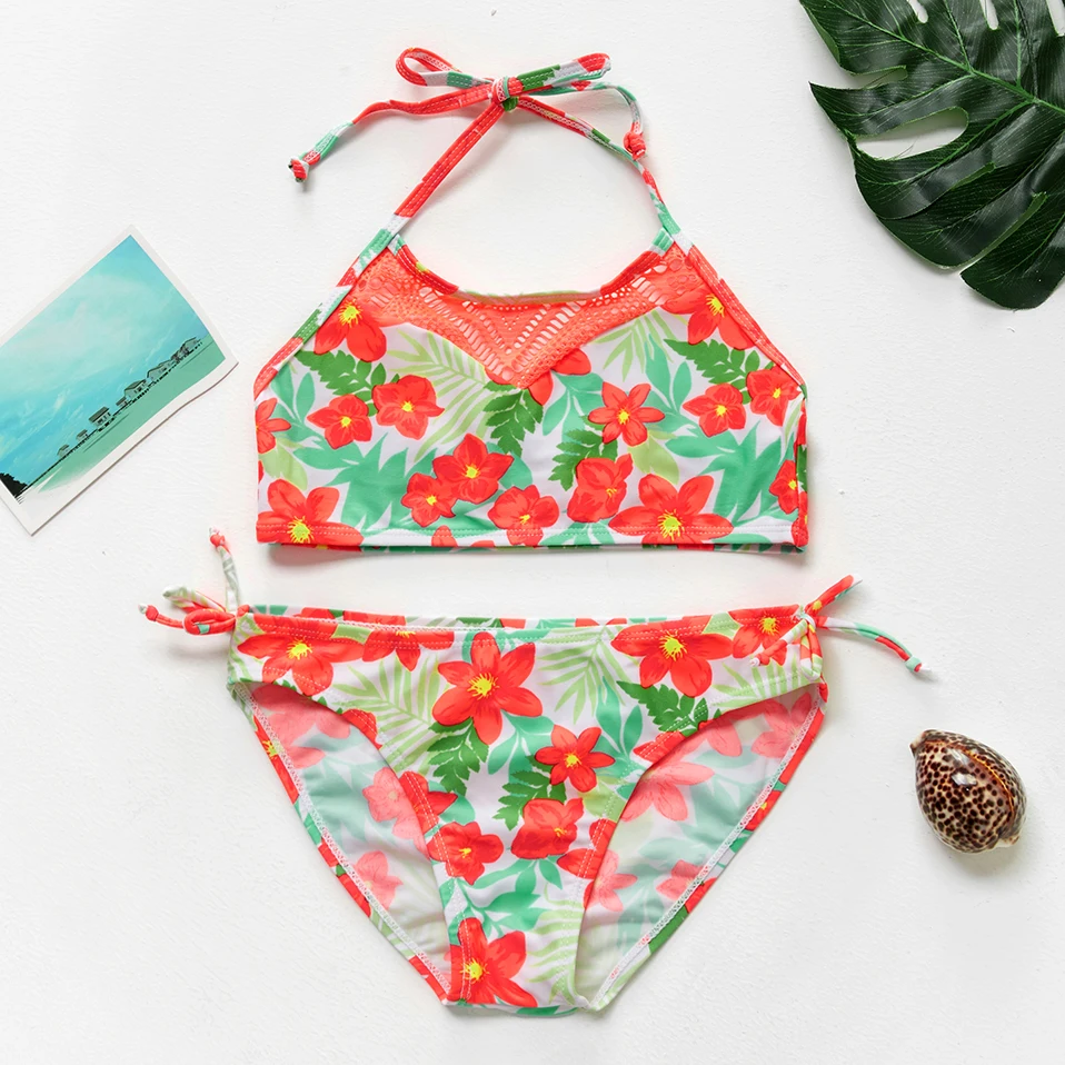 Купальник-бикини От 2 до 15 лет для девочек-подростков, комплект для плавания из двух предметов, детский купальник с тропическим цветочным принтом, ST200, 2021