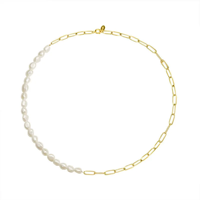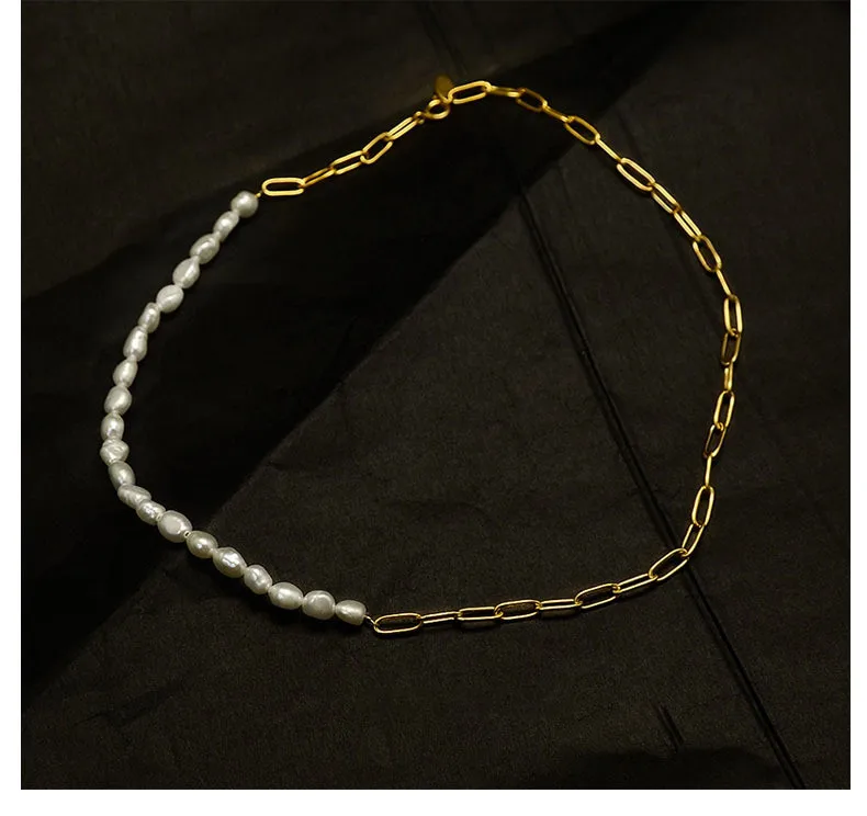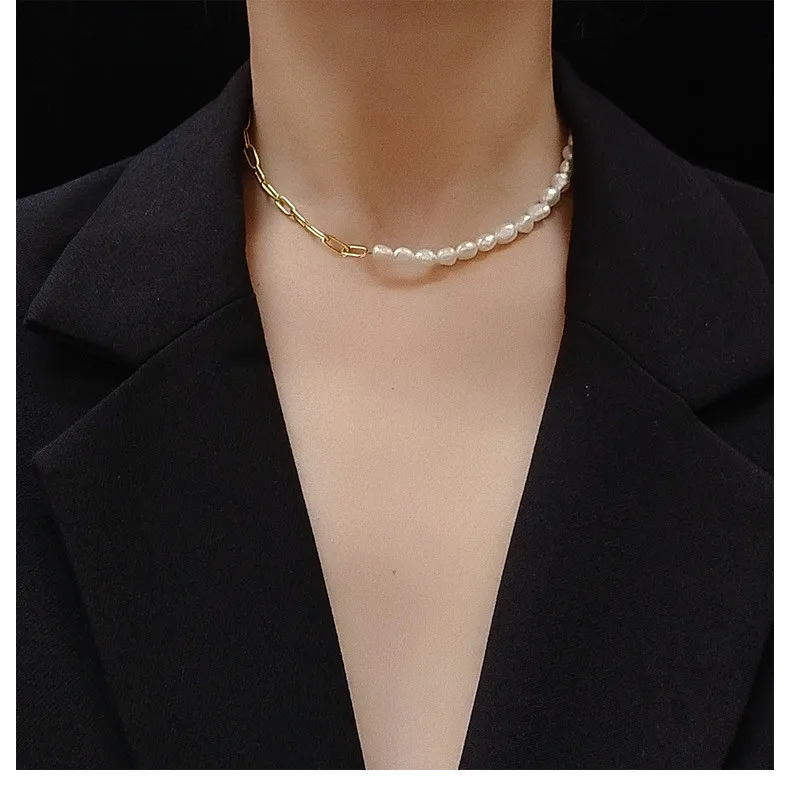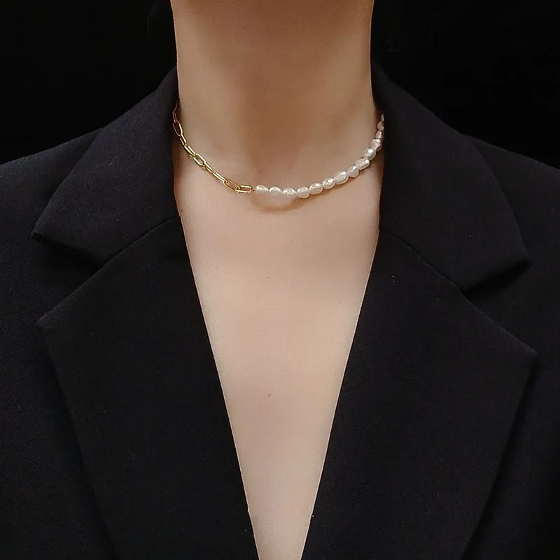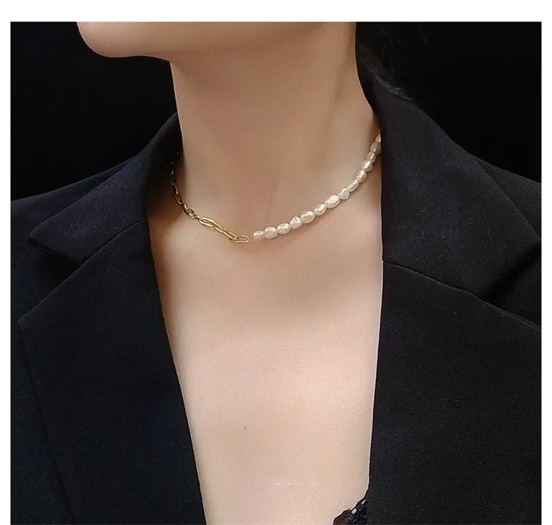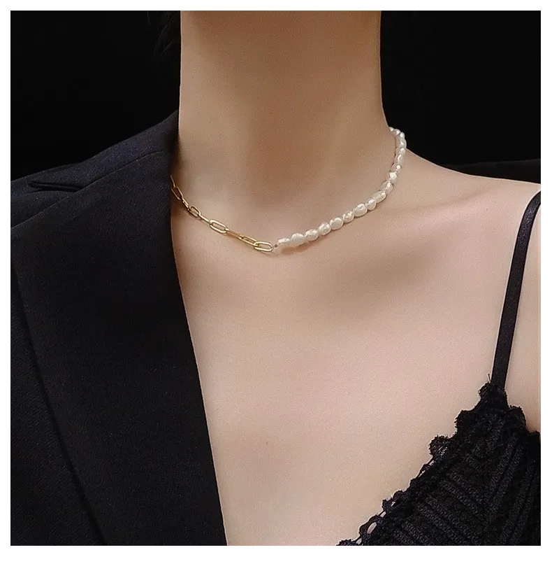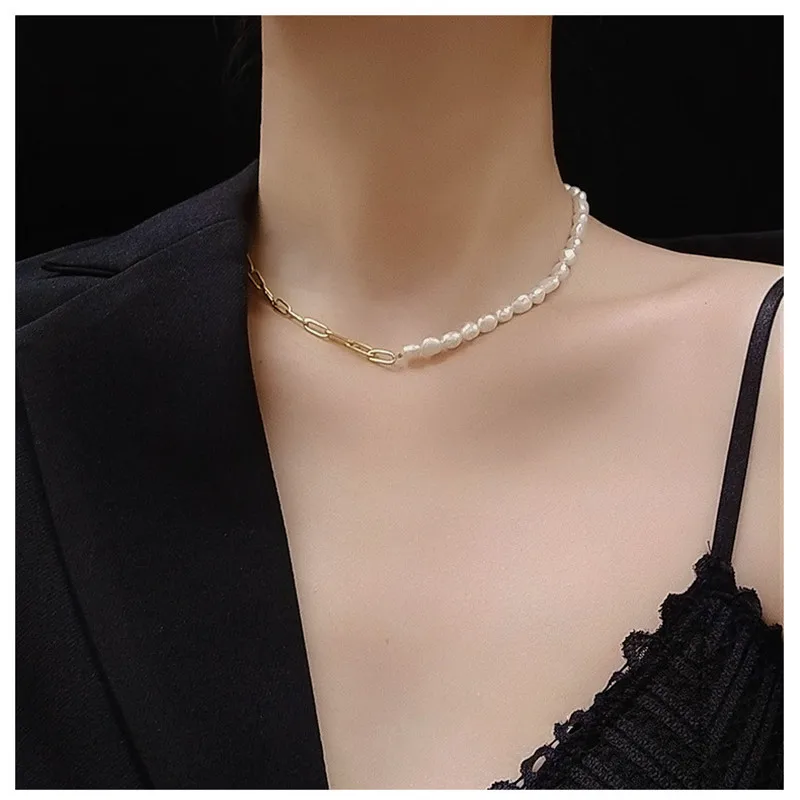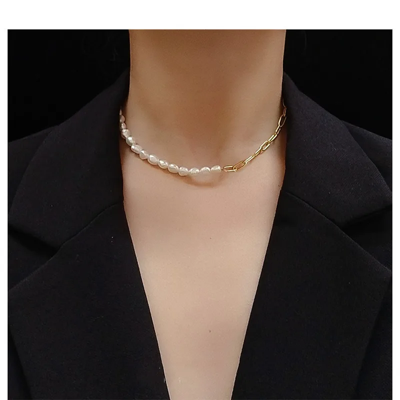 Ожерелье-чокер из нержавеющей стали с позолотой, Женская цепочка на шею, модные ювелирные изделия, простые ожерелья с пресноводным жемчугом, свадебный подарок