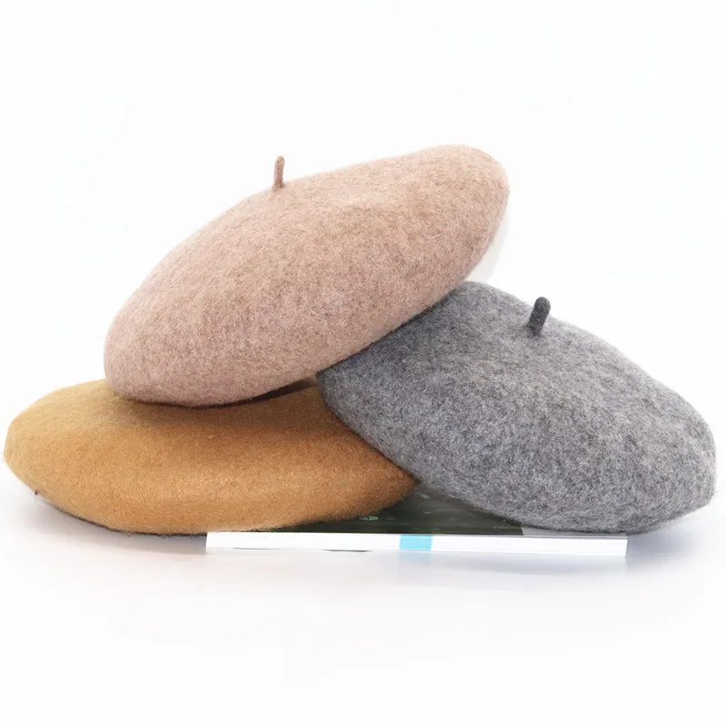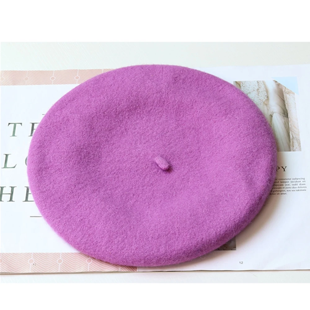 Зимняя шапка, женский берет, однотонная шерстяная шапка художника, универсальная, для родителей и детей
