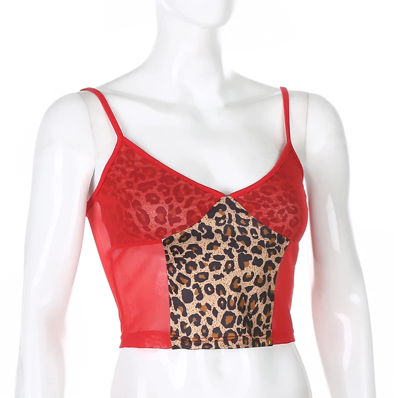 Женский сетчатый Леопардовый топ на бретельках без рукавов с v-обра...